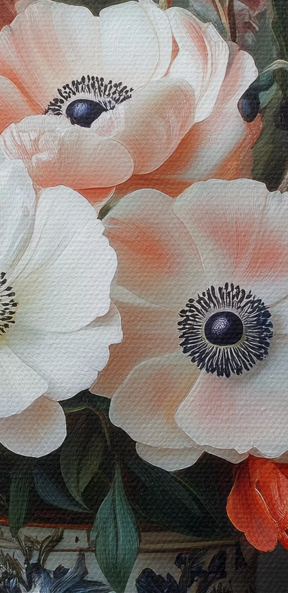 Trois types de matériaux peuvent être commandés : Economic Canvas - matériau dense et durable pour l'impression numérique, identique à la toile de peintre, surface imperméable, reproduction réaliste des détails, matériau à grain moyen. Premium Canvas - la texture ressemble à celle d'une toile de peintre (petits fils entrelacés). Reproduction douce et détaillée de l'image sur une surface mate. Eco-Premium - tissu 100 % coton de haute qualité. Grâce aux fibres naturelles de coton, le matériau est durable et résistant à l'usure. Excellente reproduction des couleurs et des détails.