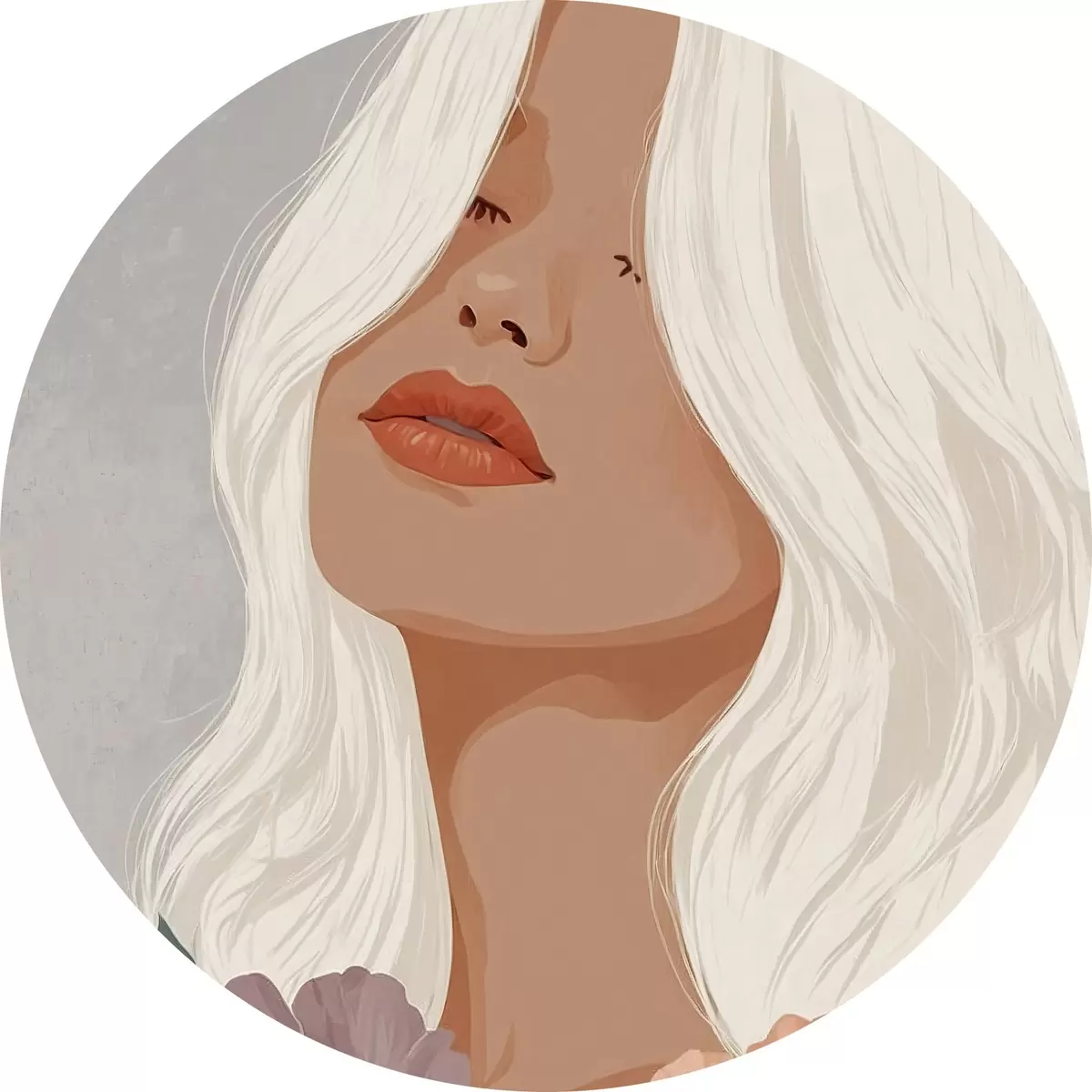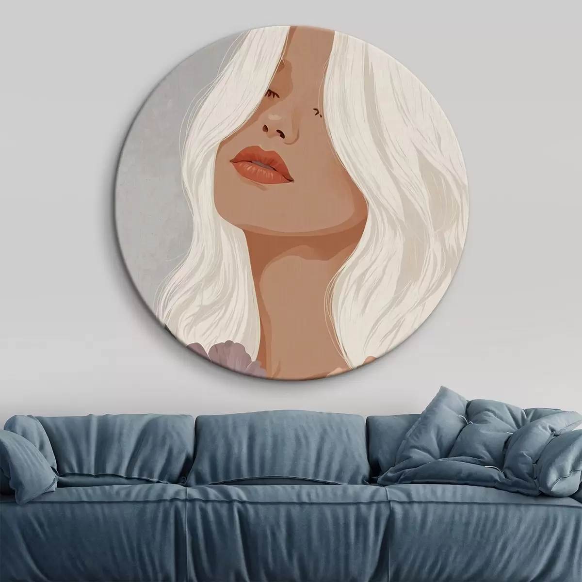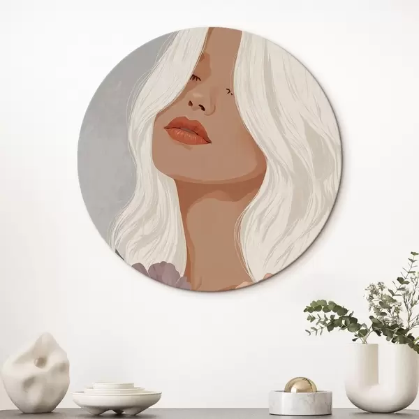 Tableaux ronds Fille sur fond gris en graphisme vectoriel r42521