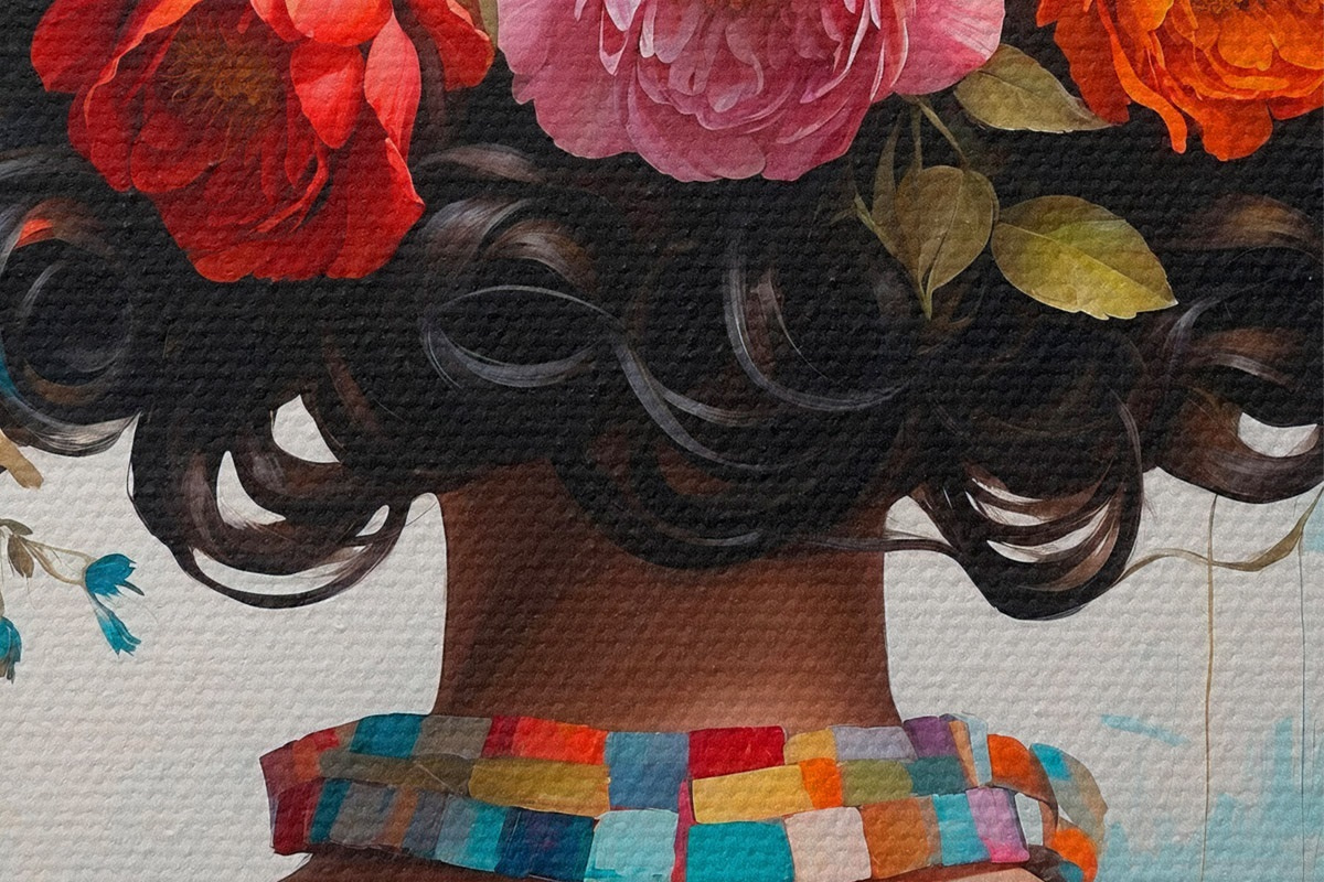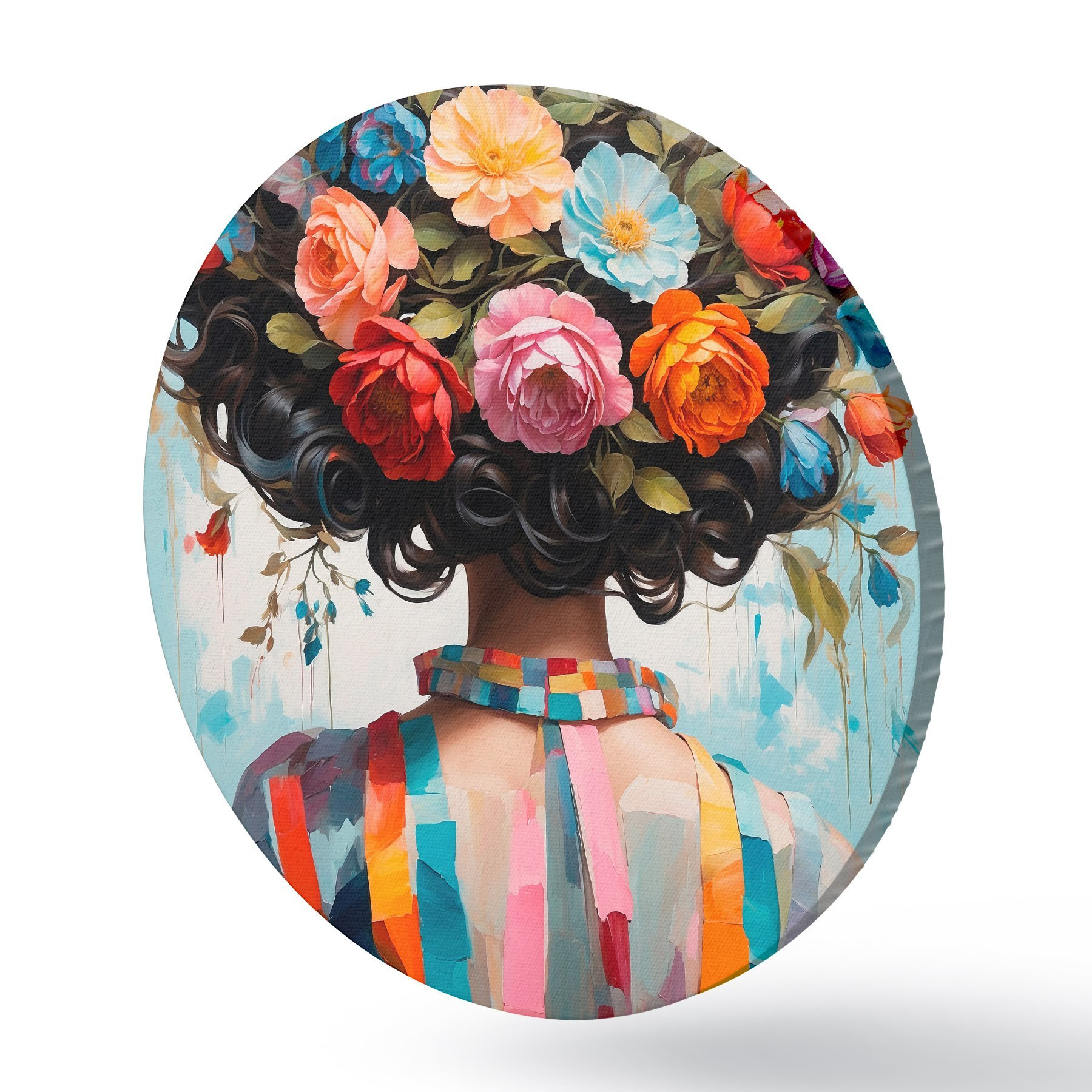 Tableaux ronds Fille en robe colorée et fleurs r42524