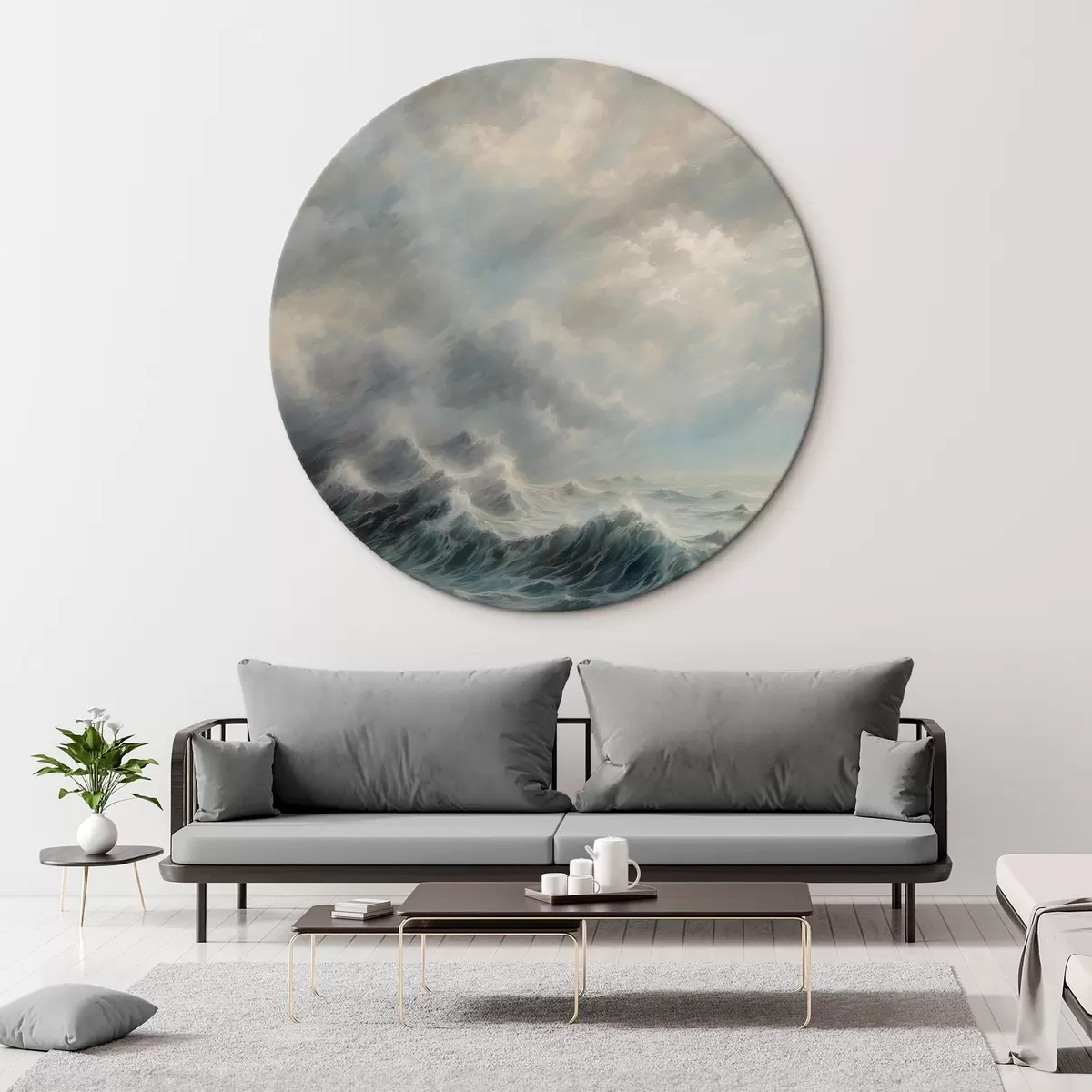 Tableaux ronds Tempête en mer r42530