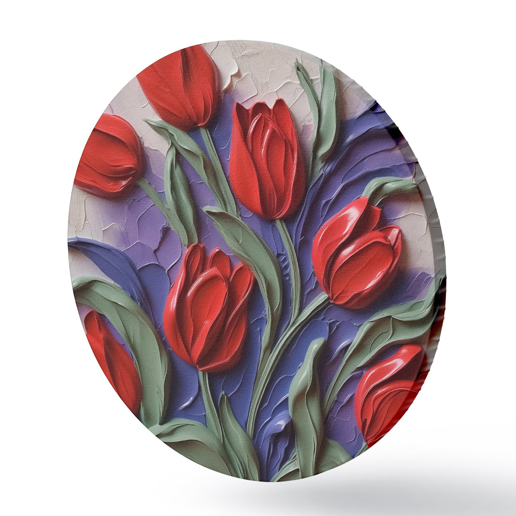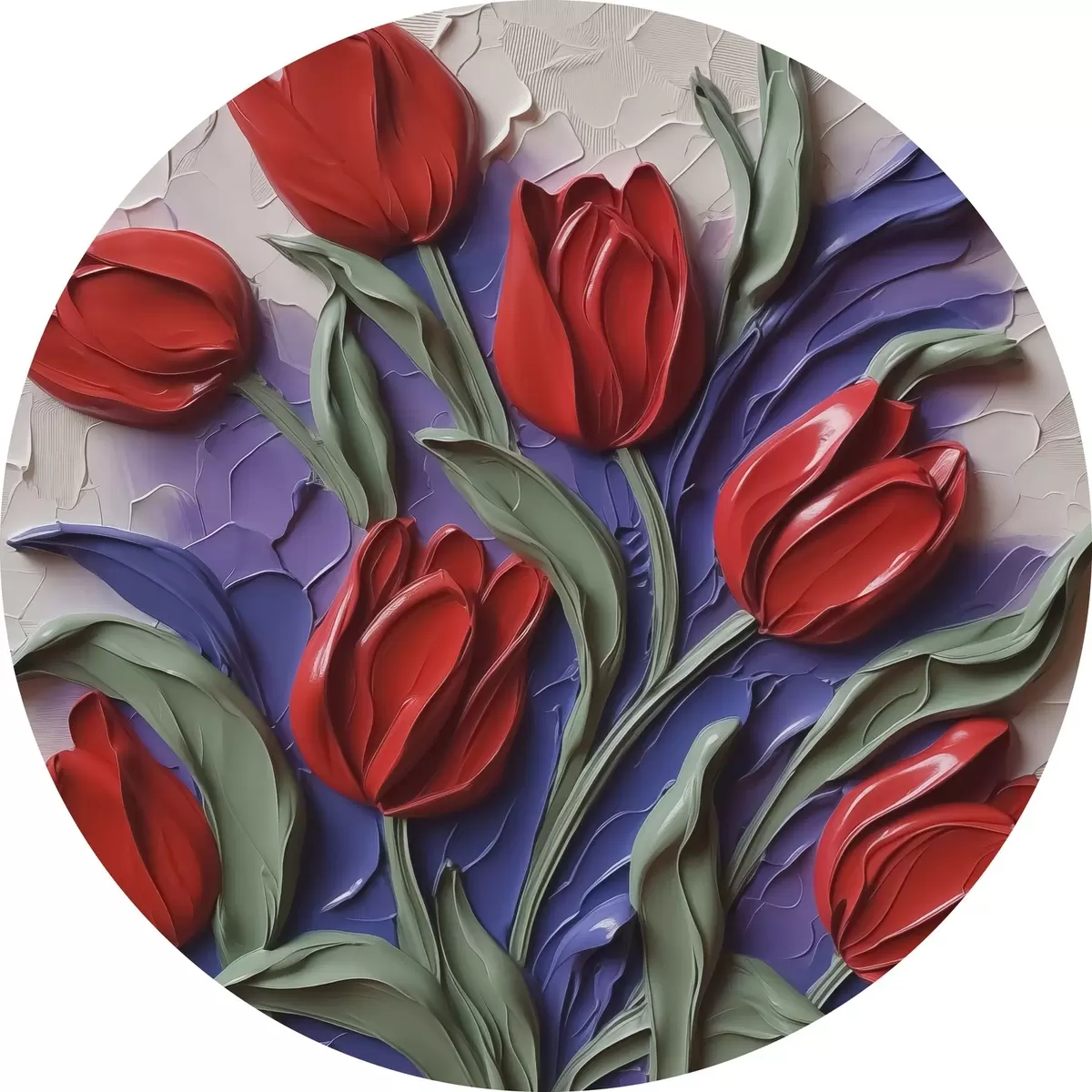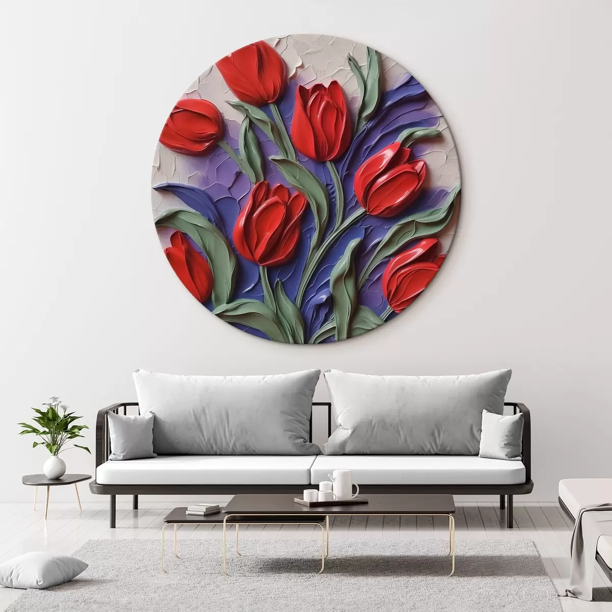 Tableaux ronds Tulipes rouges sur des coups de pinceau imitation violet r42584