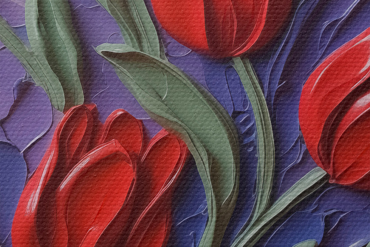 Image Tulipes rouges sur des coups de pinceau imitation violet Nr r42584