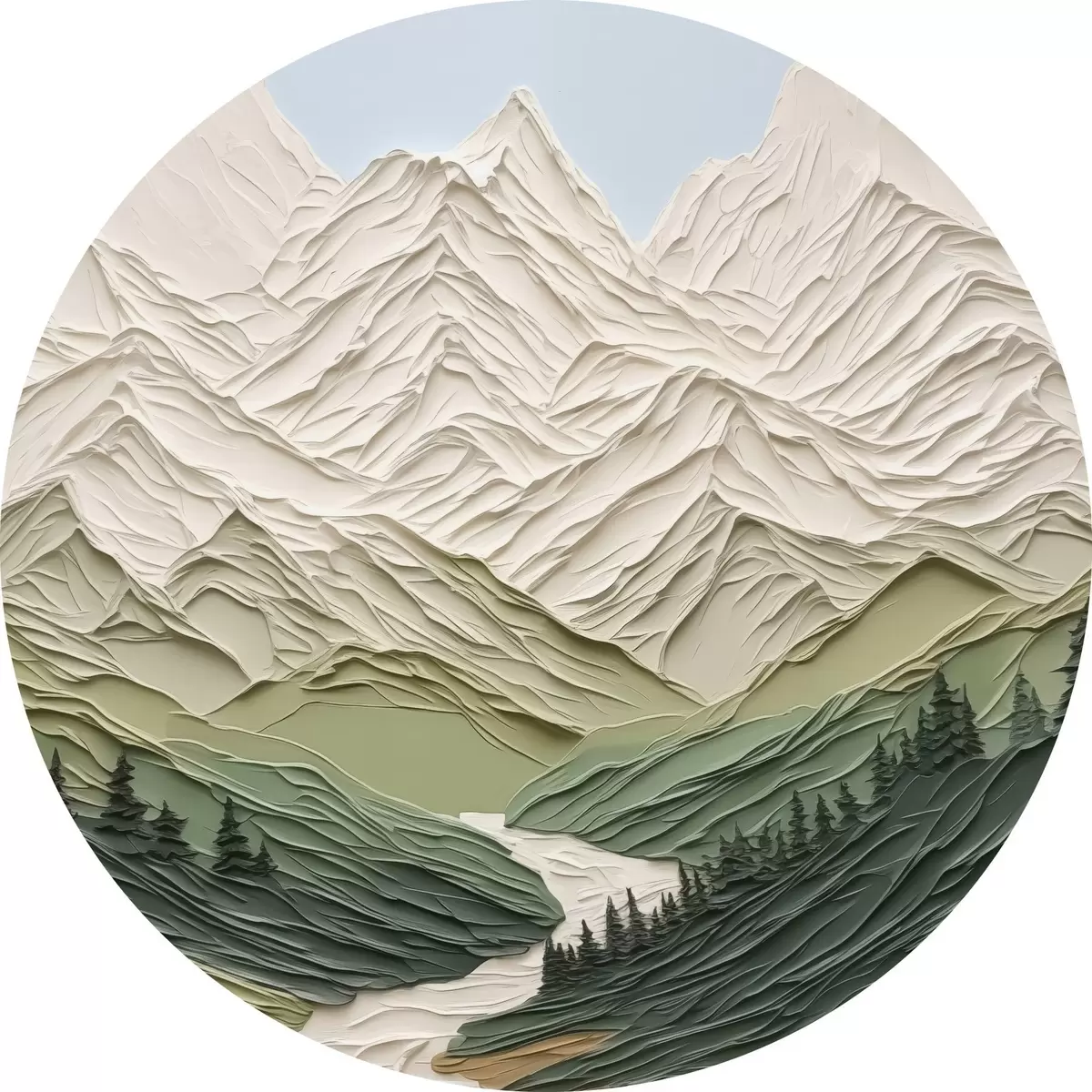 Tableaux ronds Paysage de montagne imitation coups de pinceau r42590