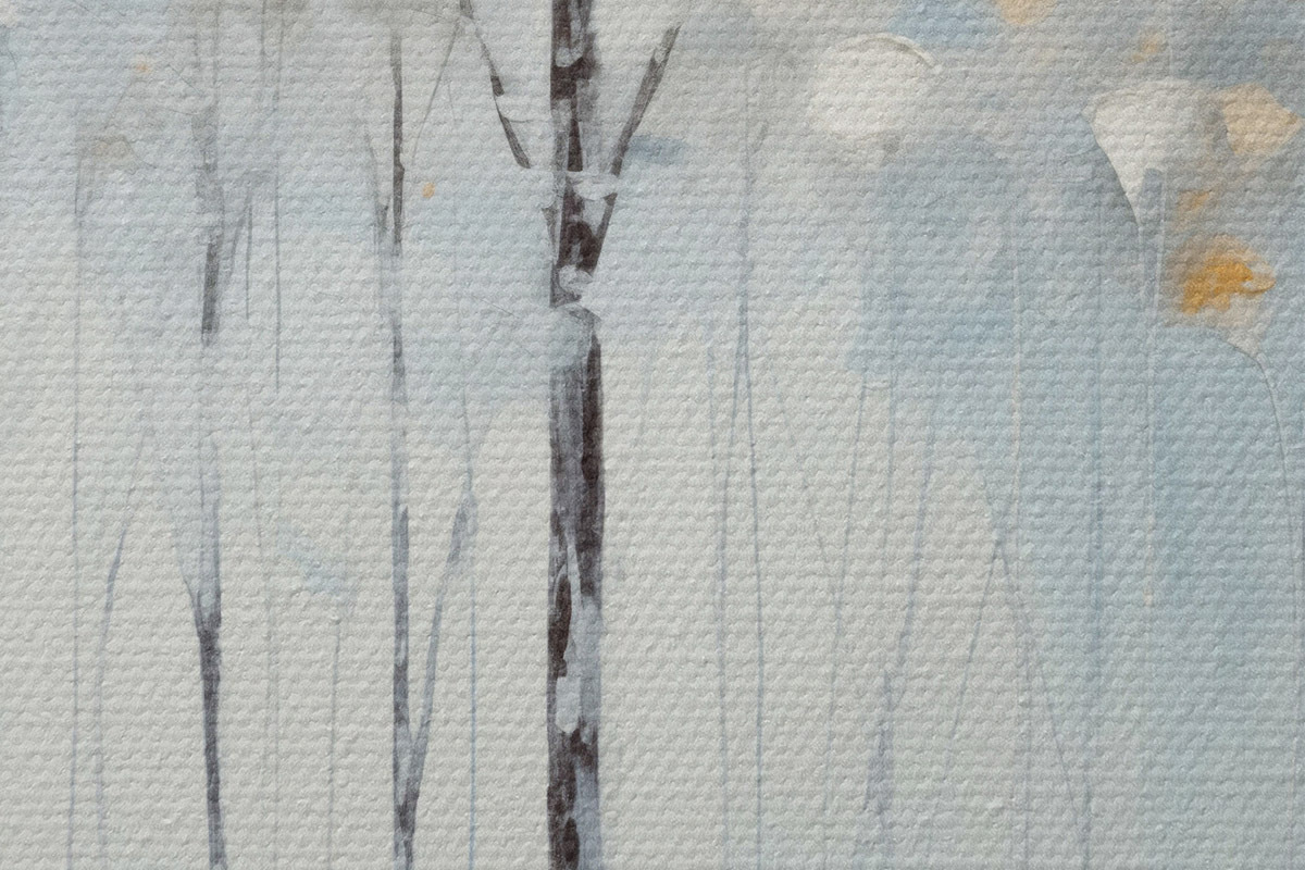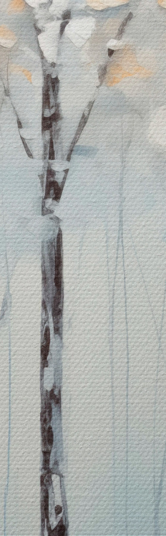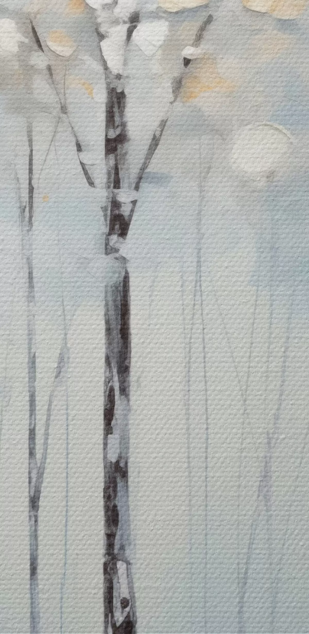 Image Grands arbres élancés avec des feuilles bleues et des touches de jaune sur un fond bleu tendre, imitation peinture à l'huile Nr r42731