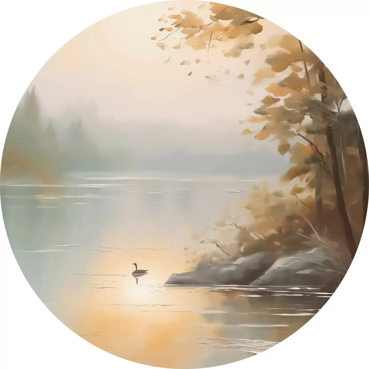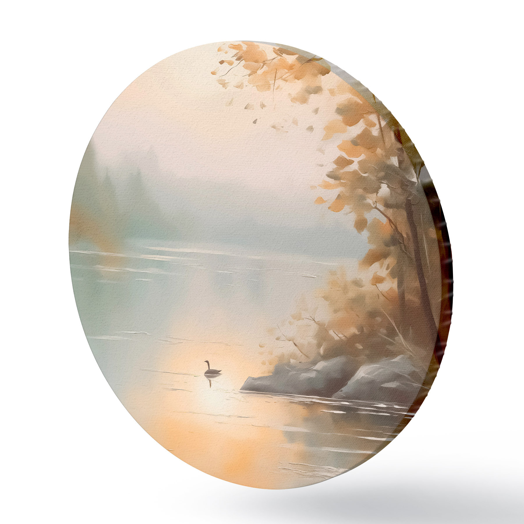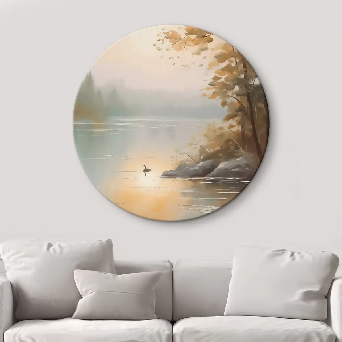 Tableaux ronds Arbre au bord de l'étang paysage r42757