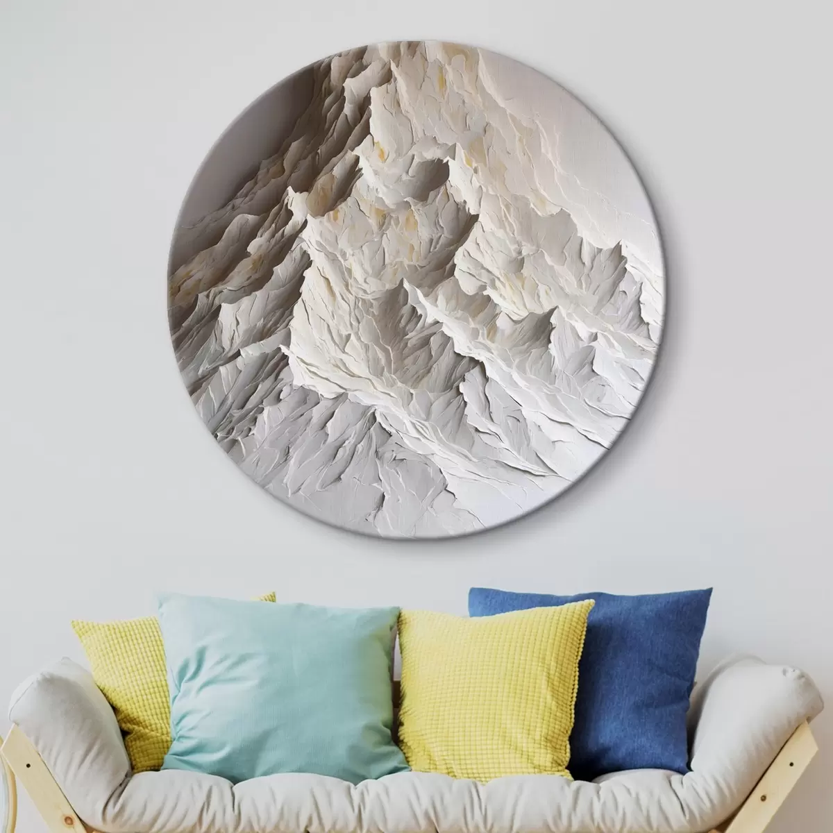 Tableaux ronds montagne enneigée en peinture à l'huile rtyle r42760