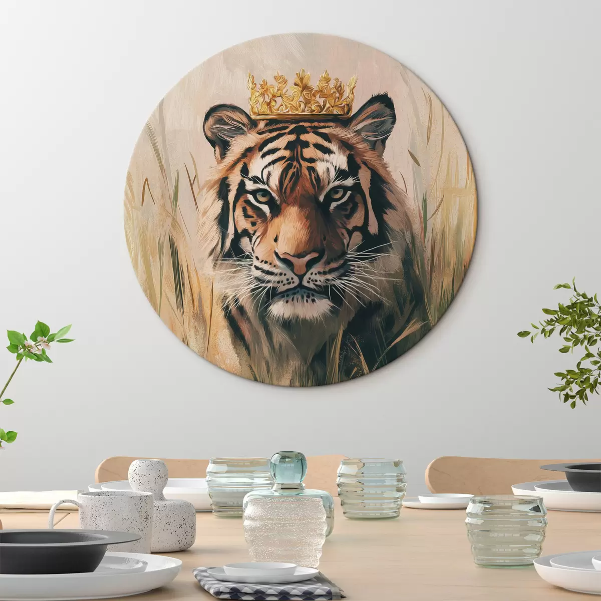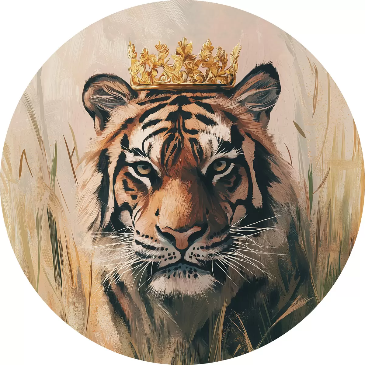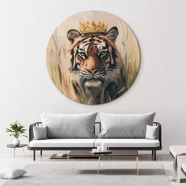 Tableaux ronds Tigre dans un pré verdoyant, couronne, dessin à l'acrylique r42783