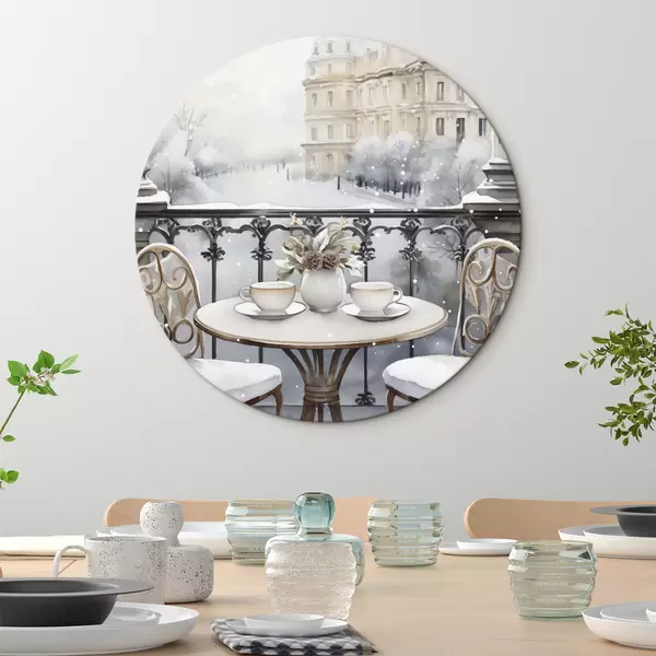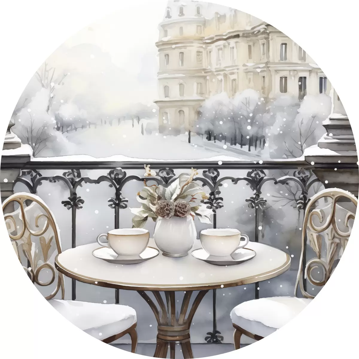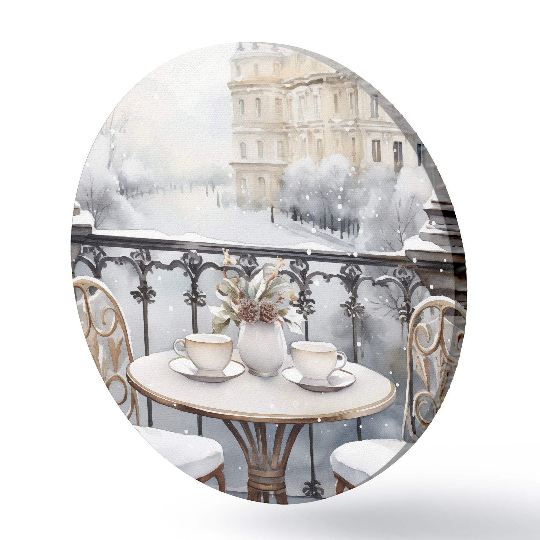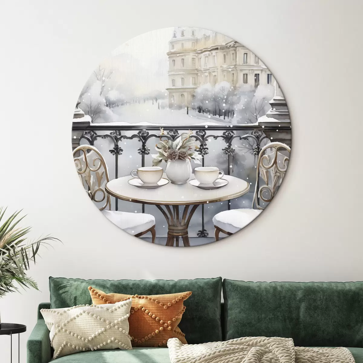 Tableaux ronds Beau café, tasses de thé, style bohème, aquarelle, esthétique hivernale r42796