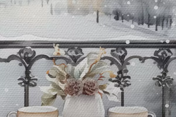 Image Beau café, tasses de thé, style bohème, aquarelle, esthétique hivernale Nr r42796