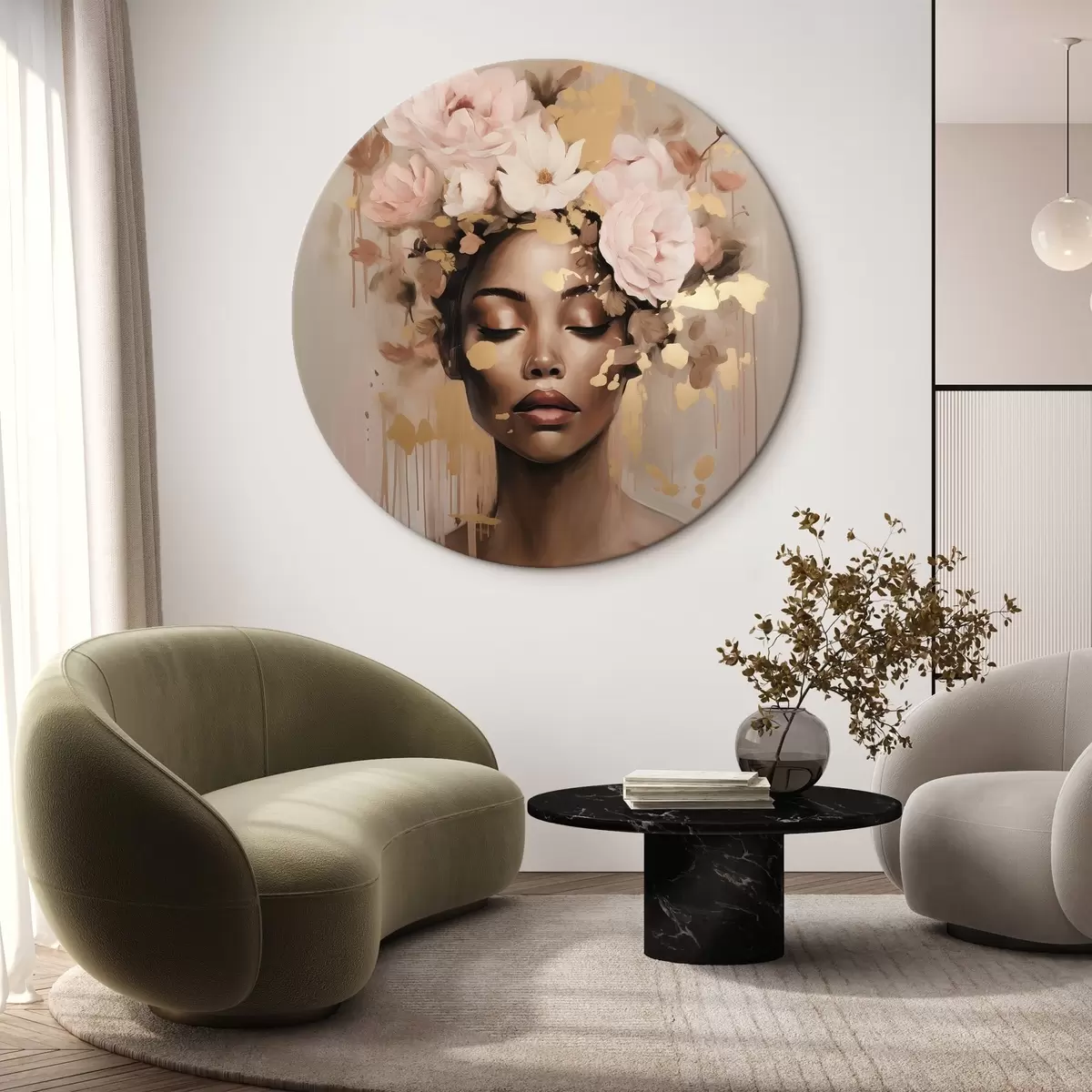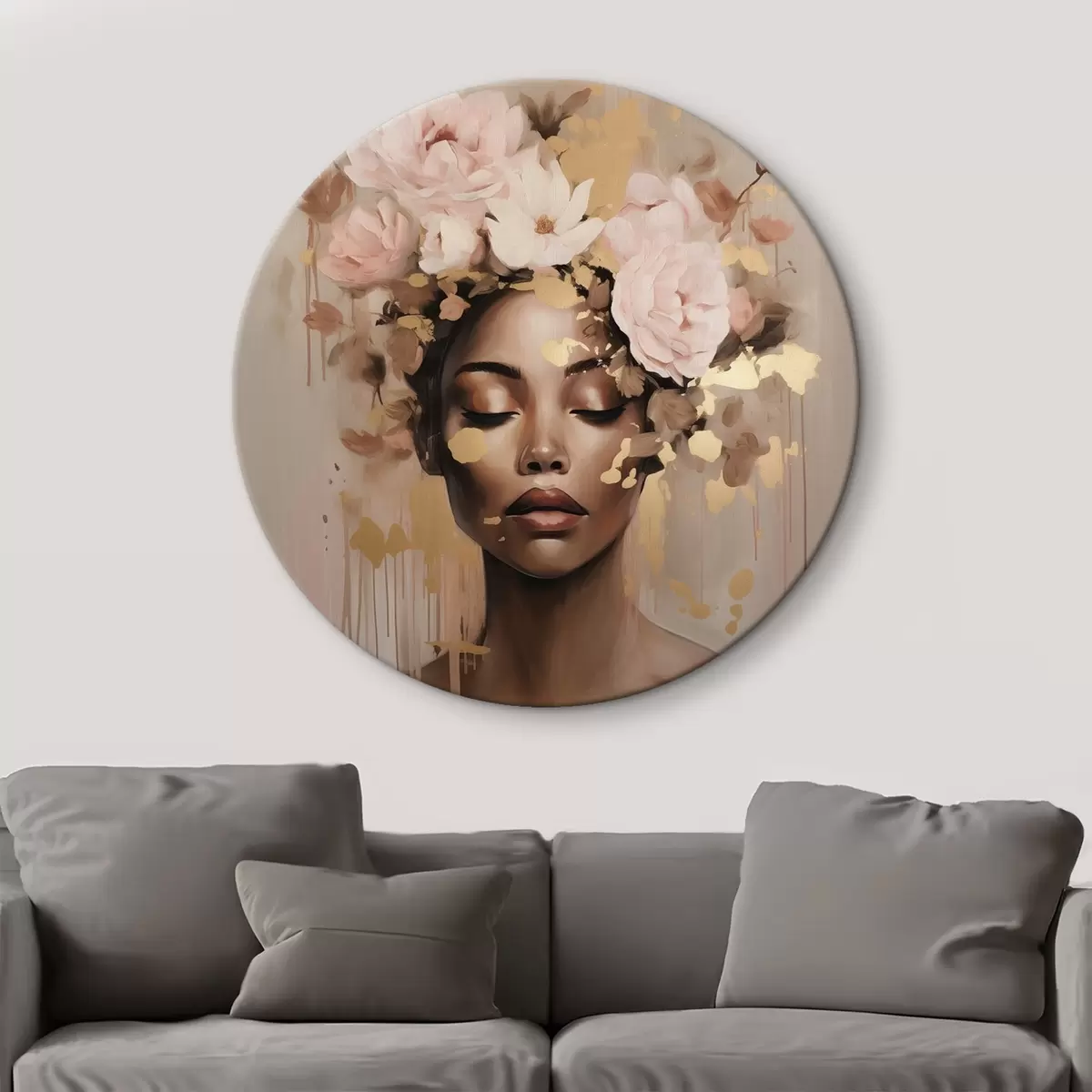 Tableaux ronds Fille avec couronne de fleurs r42814