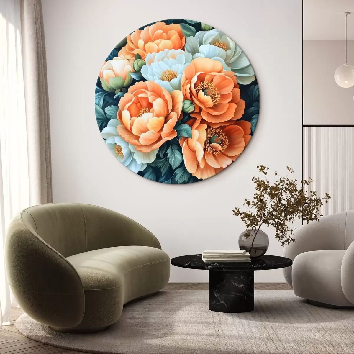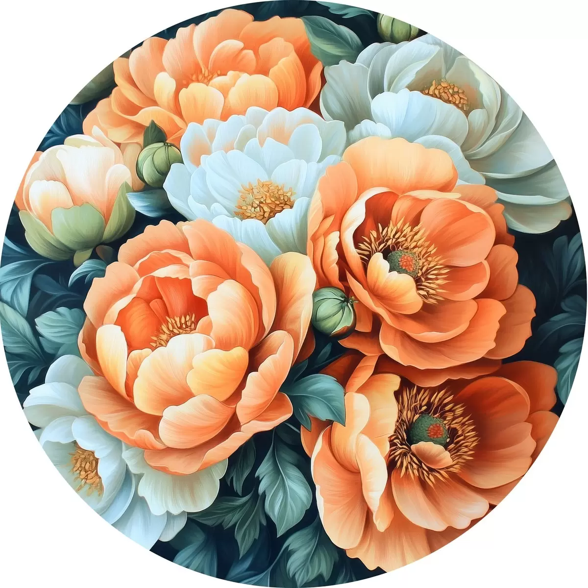 Tableaux ronds Fleurs blanches et orange r42860