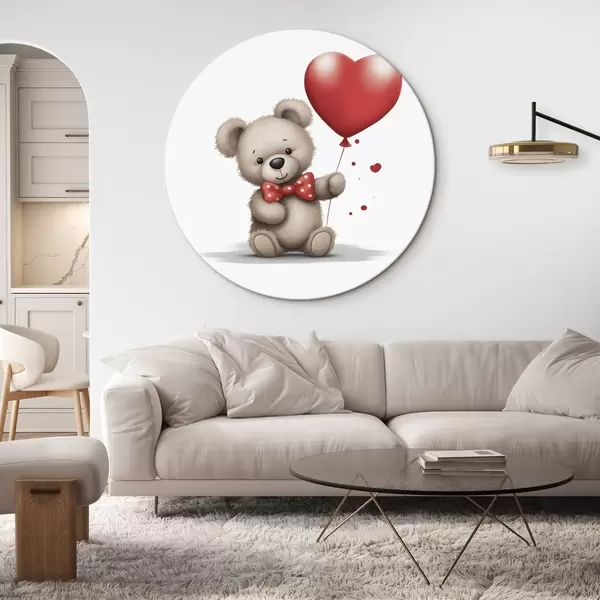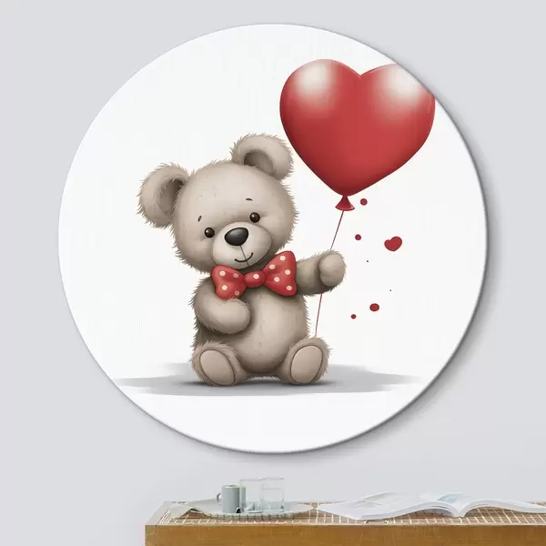 Tableaux ronds Ourson mignon avec un ballon à cœur rouge r42879