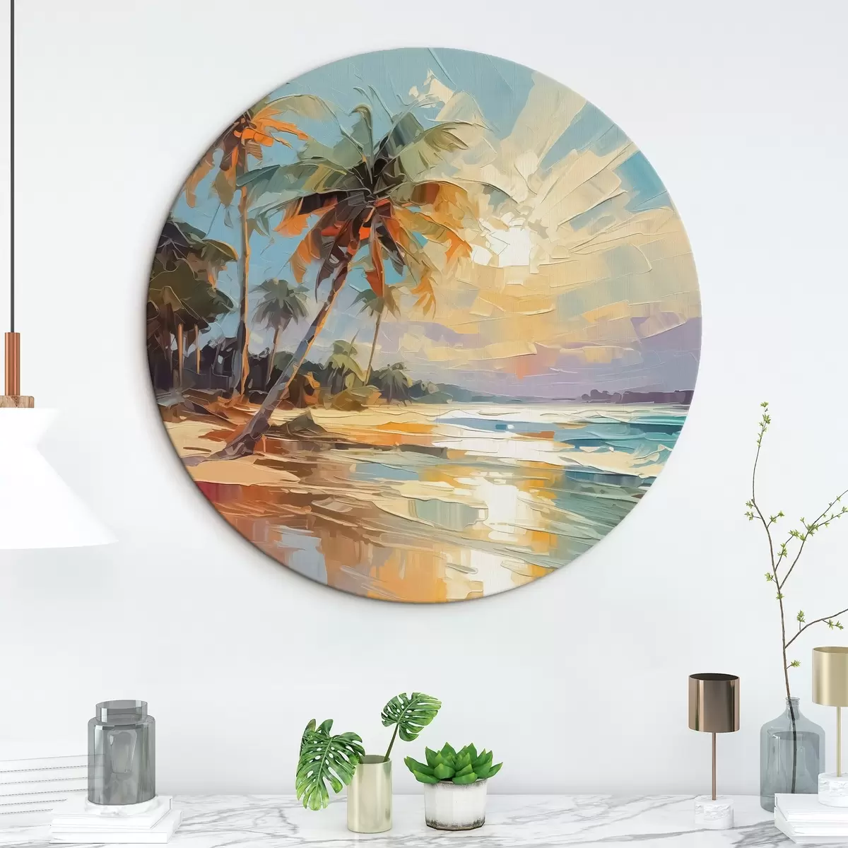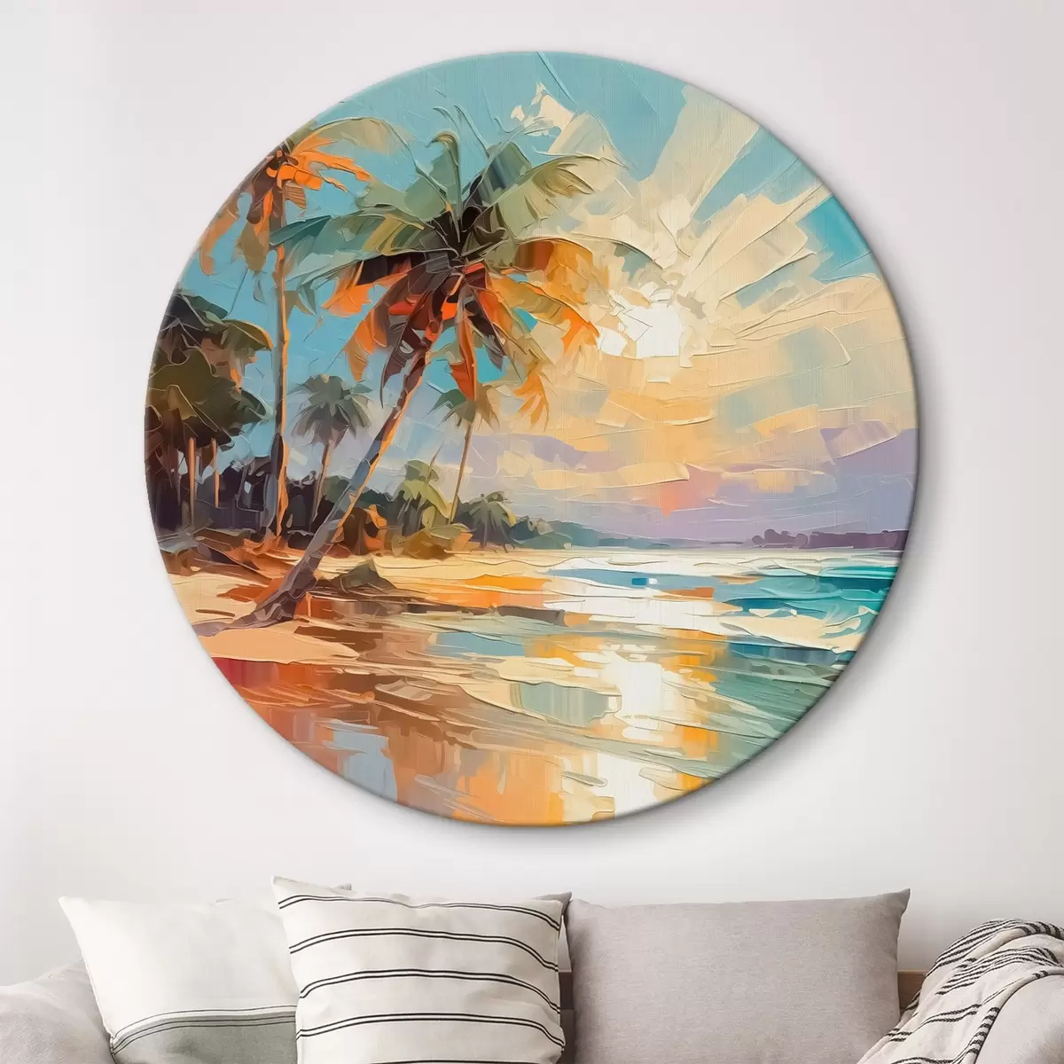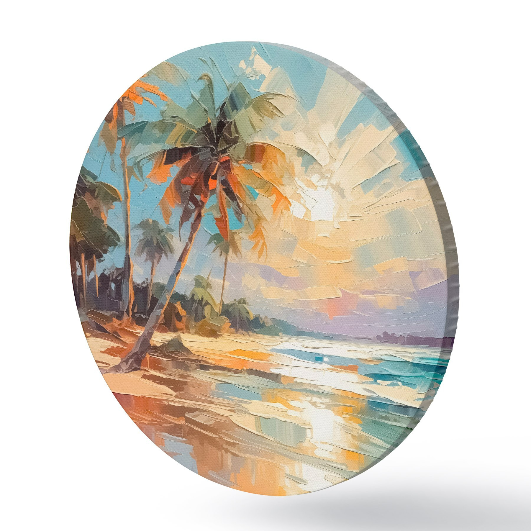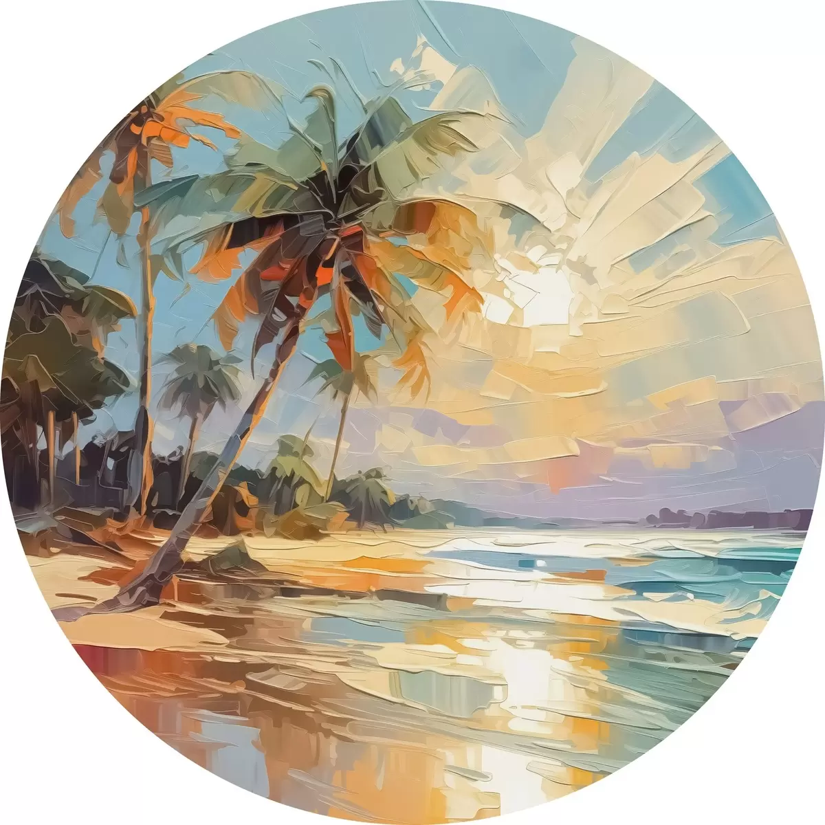 Tableaux ronds Palmiers au bord de la mer imitation de peinture r42897