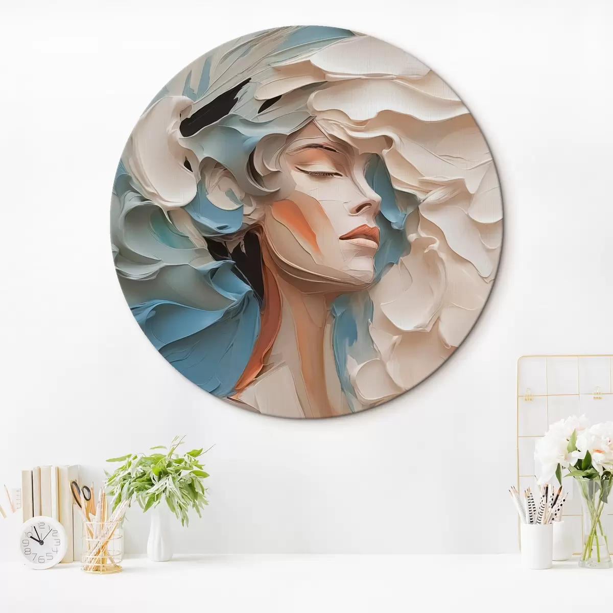 Tableaux ronds Portrait d'une jeune fille imitation abstraite de peinture r42904