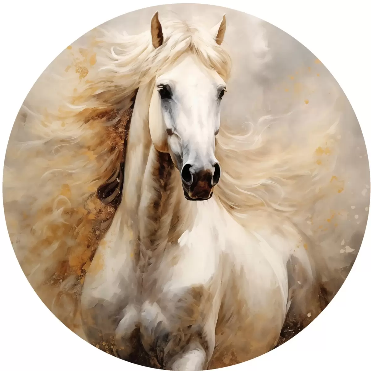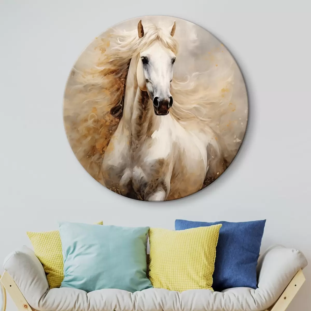 Tableaux ronds Portrait pittoresque d'un cheval blanc en mouvement r42932