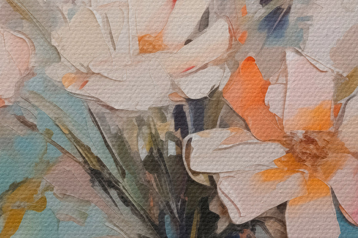 Trois types de matériaux peuvent être commandés : Economic Canvas - matériau dense et durable pour l'impression numérique, identique à la toile de peintre, surface imperméable, reproduction réaliste des détails, matériau à grain moyen. Premium Canvas - la texture ressemble à celle d'une toile de peintre (petits fils entrelacés). Reproduction douce et détaillée de l'image sur une surface mate. Eco-Premium - tissu 100 % coton de haute qualité. Grâce aux fibres naturelles de coton, le matériau est durable et résistant à l'usure. Excellente reproduction des couleurs et des détails.