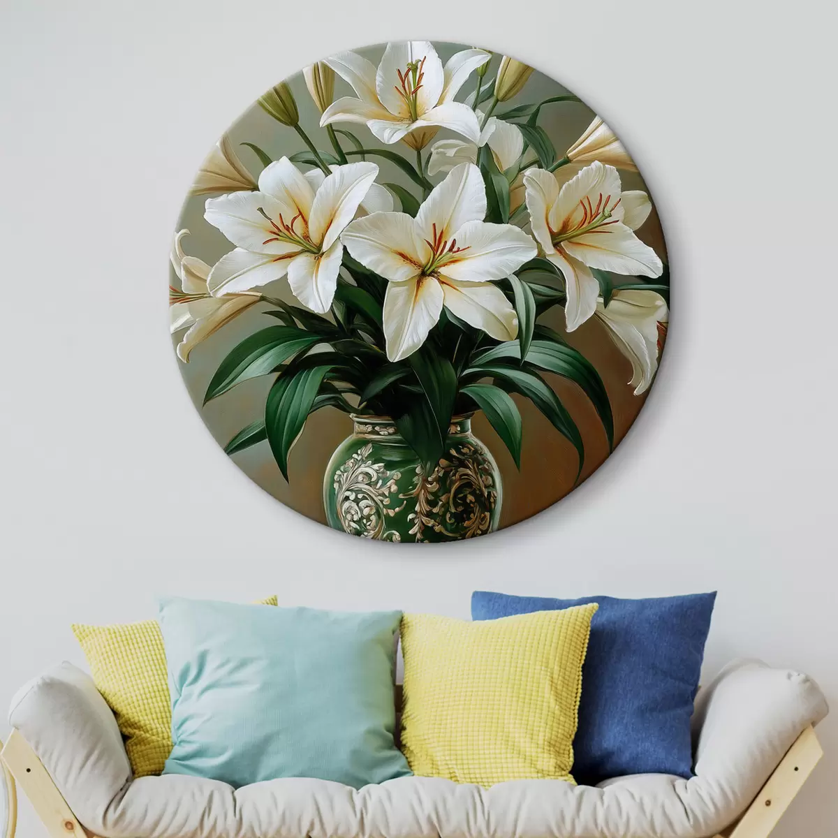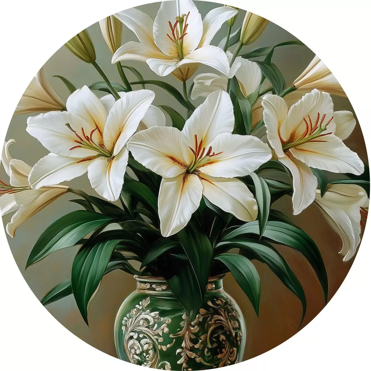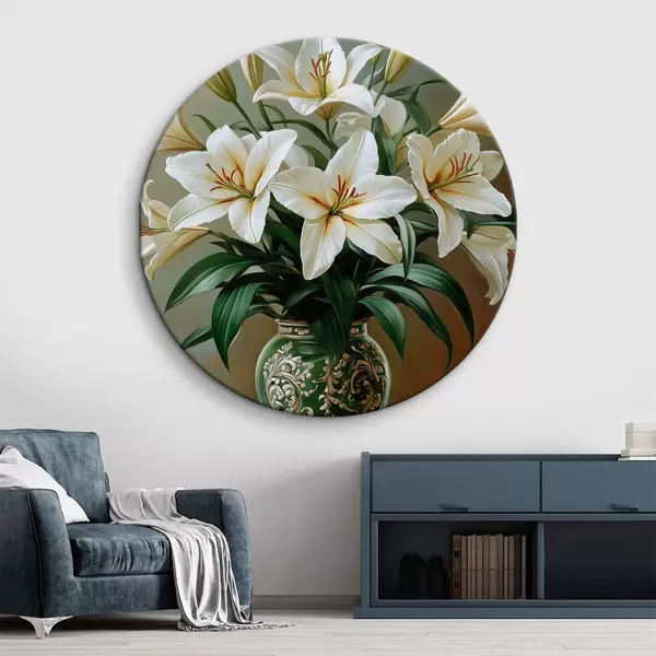 Tableaux ronds Bouquet de lys blancs dans un vase r42975