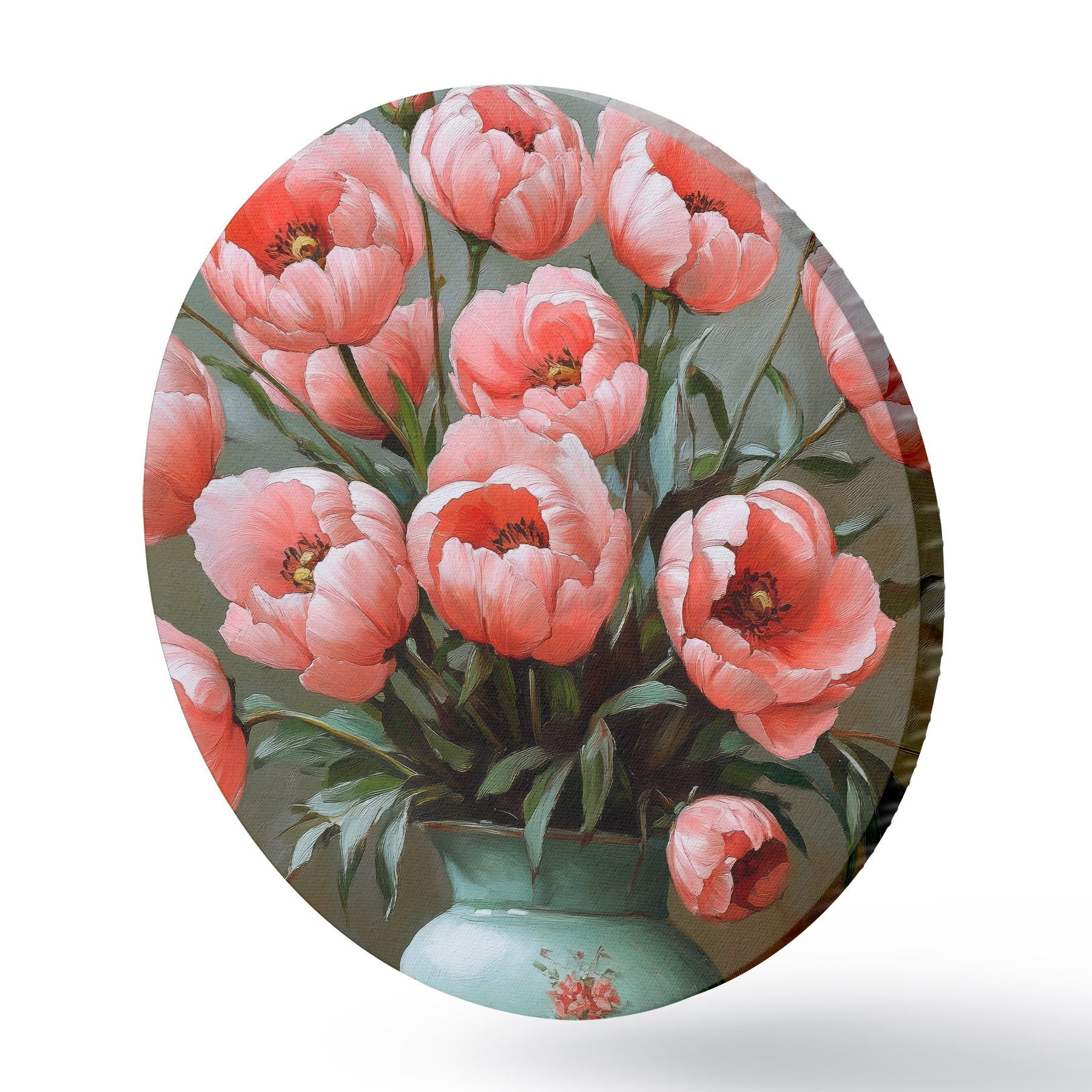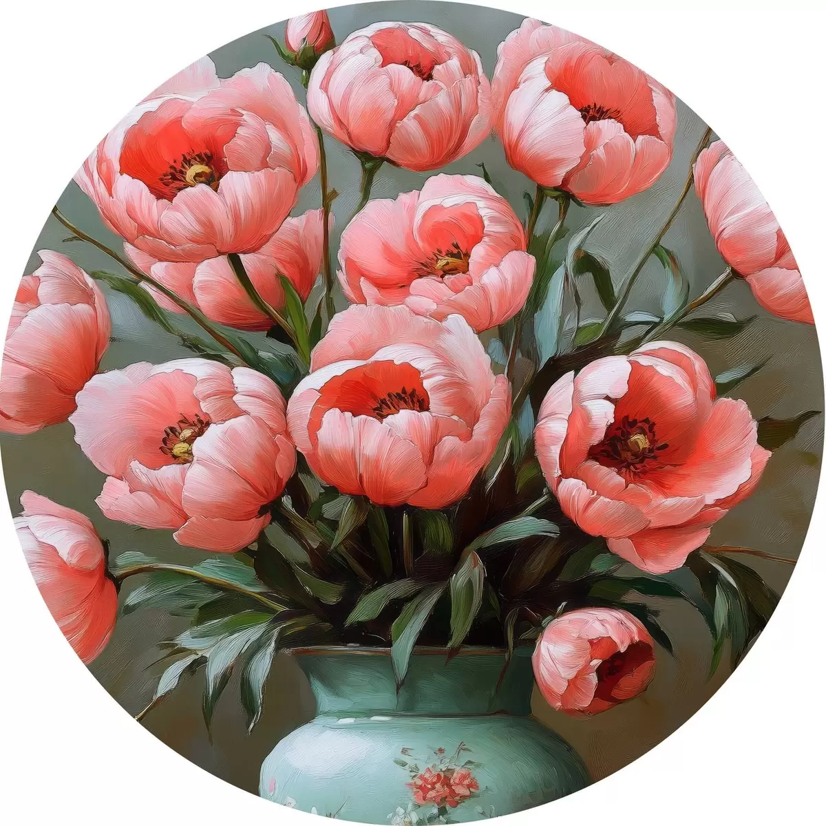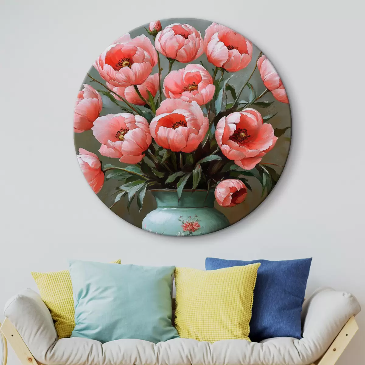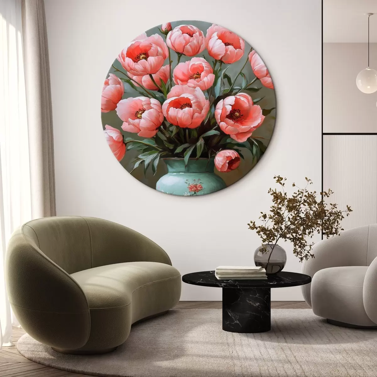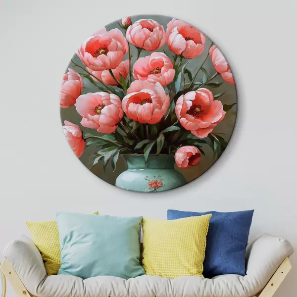 Tableaux ronds Fleurs roses luxuriantes dans un vase r42979