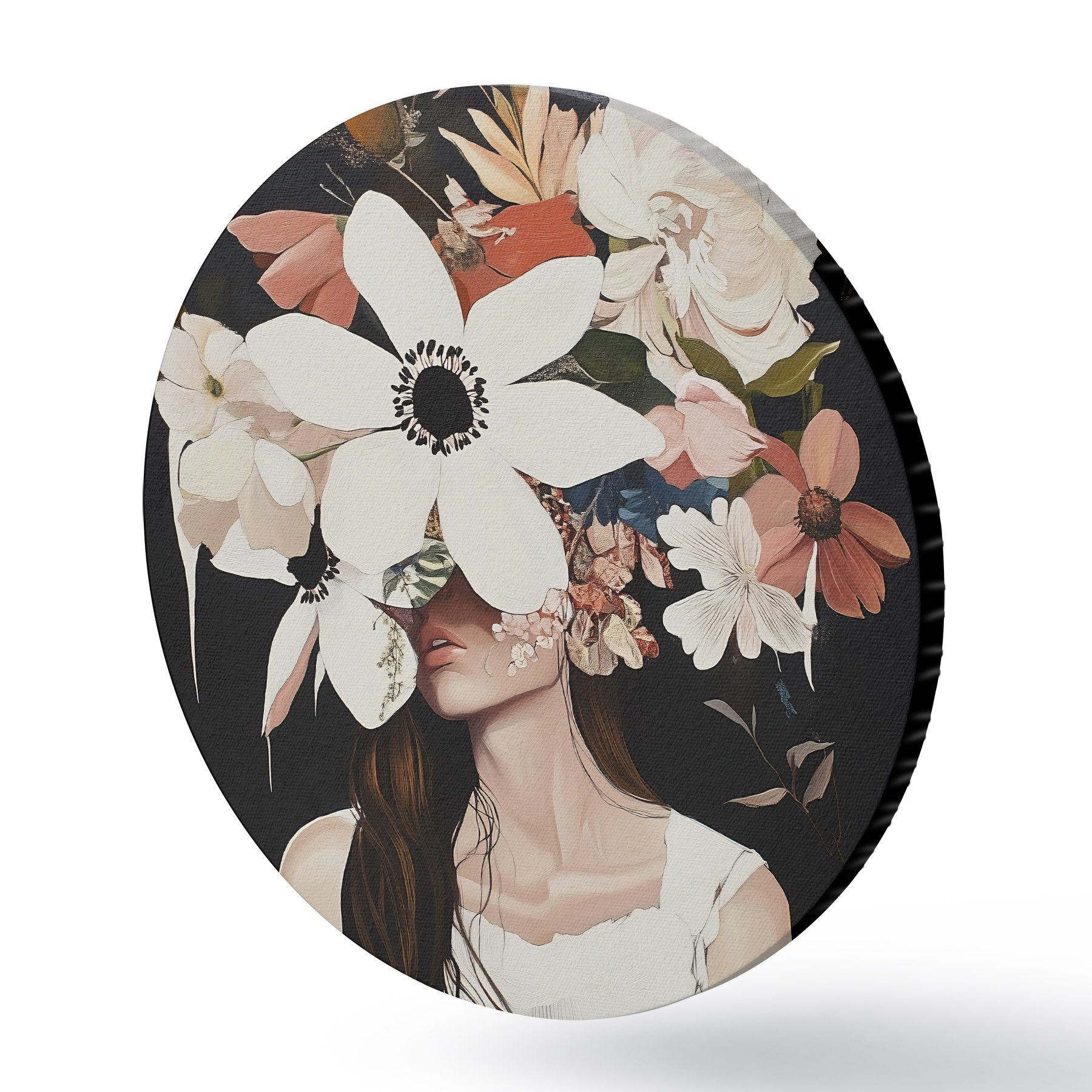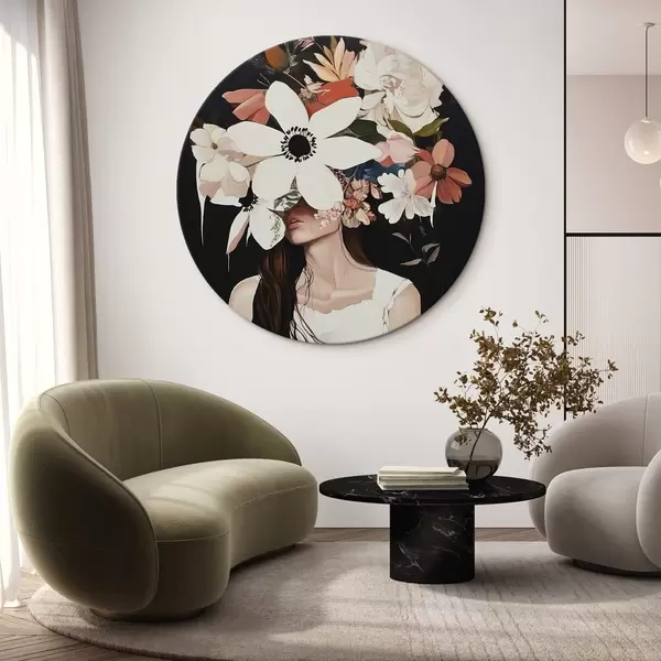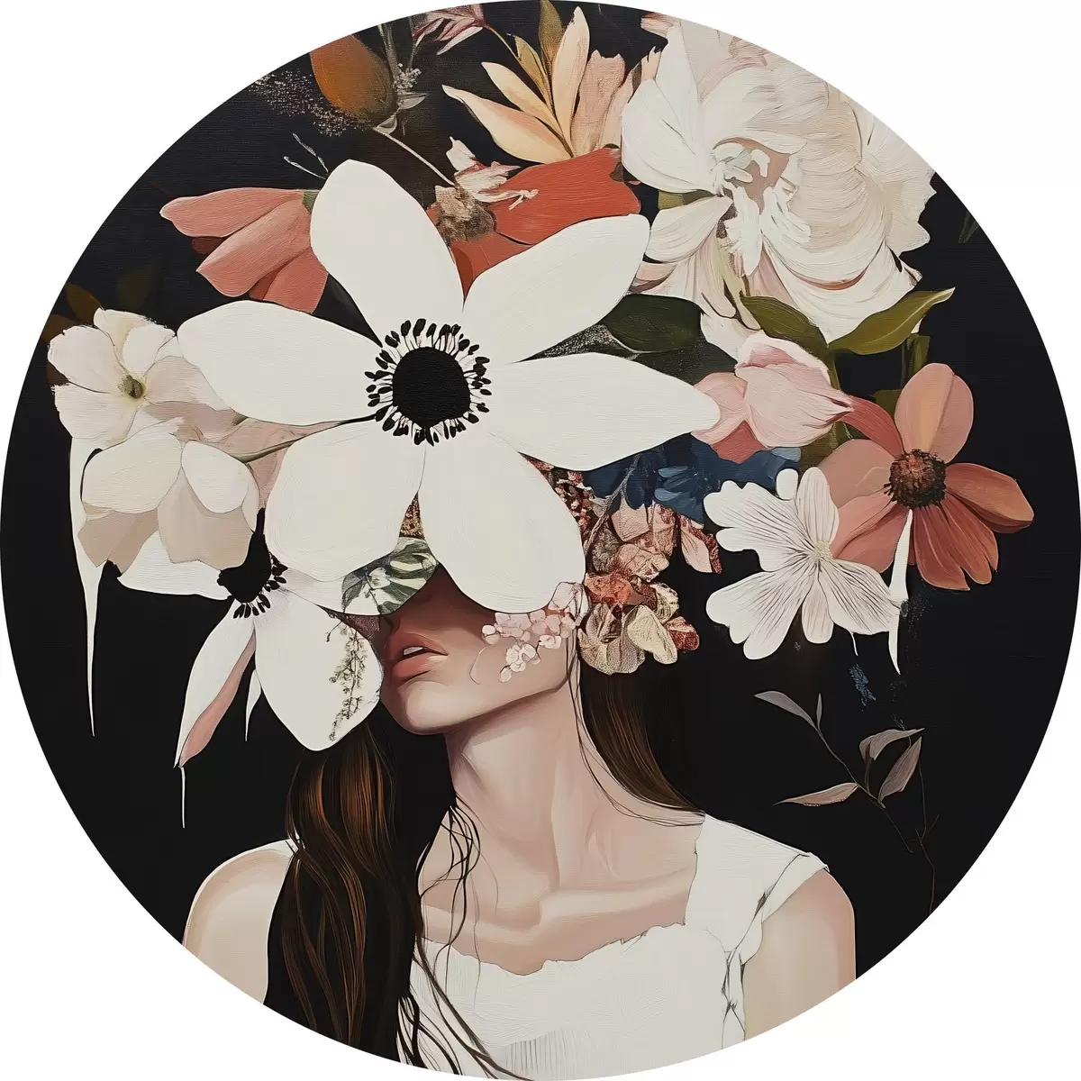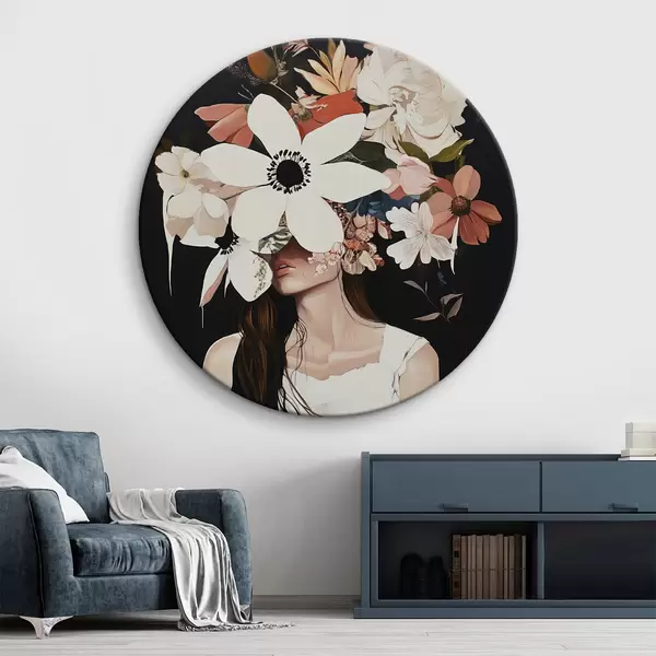Tableaux ronds Fille avec des fleurs sur le visage r42989