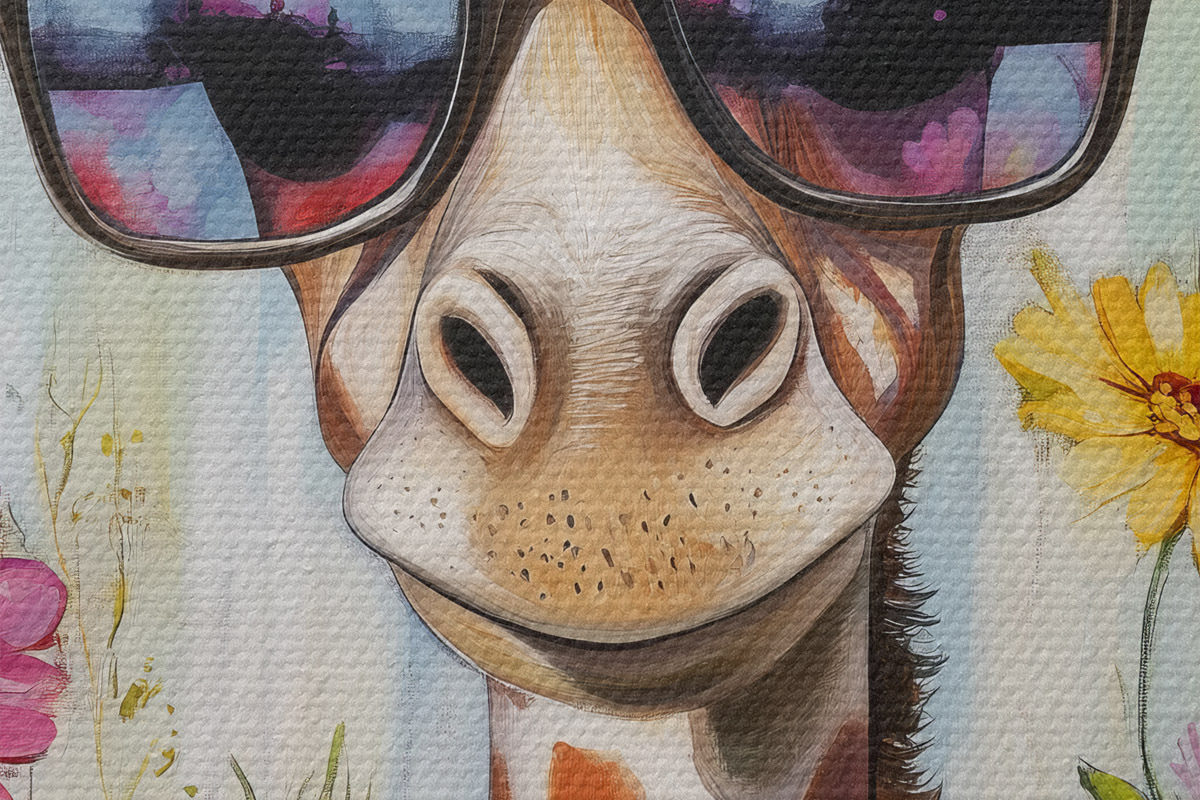 Image Girafe avec lunettes près de fleurs Nr r42991