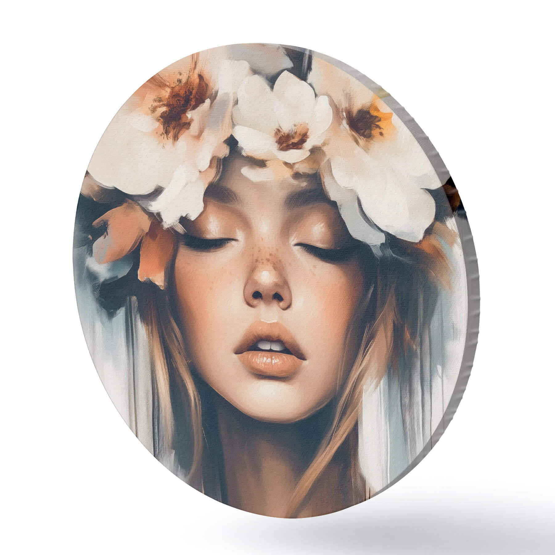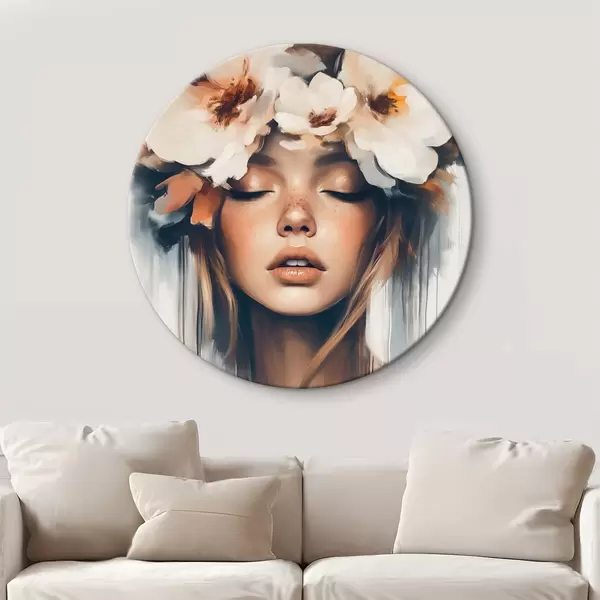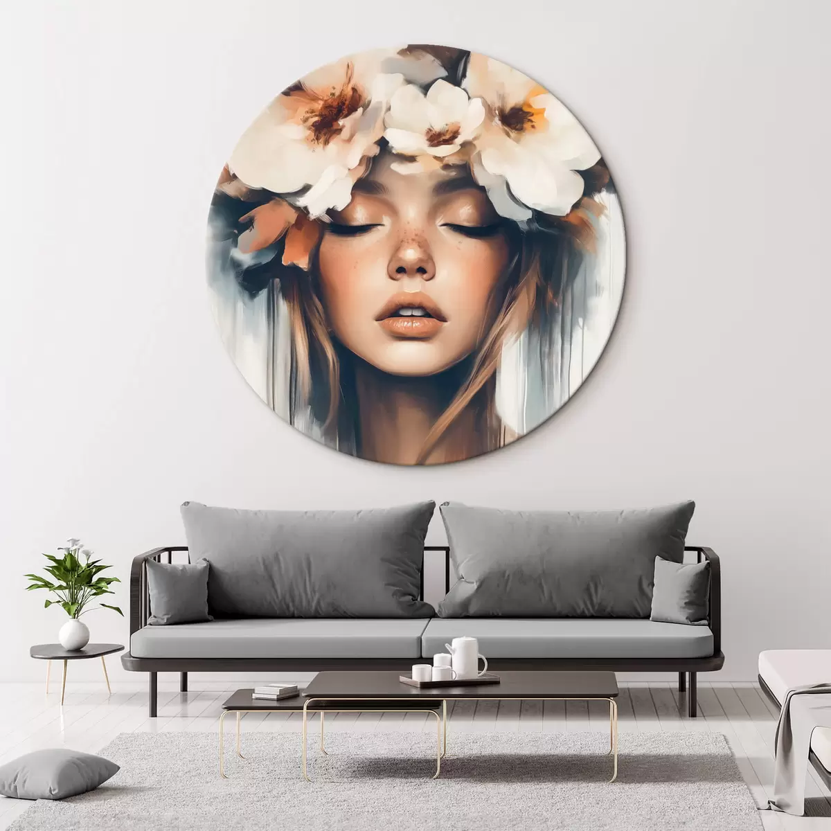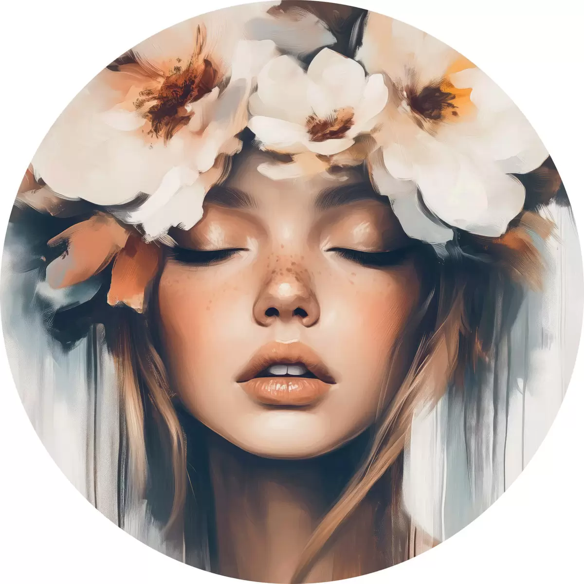 Tableaux ronds Portrait d'une femme avec des fleurs dans les cheveux r43001