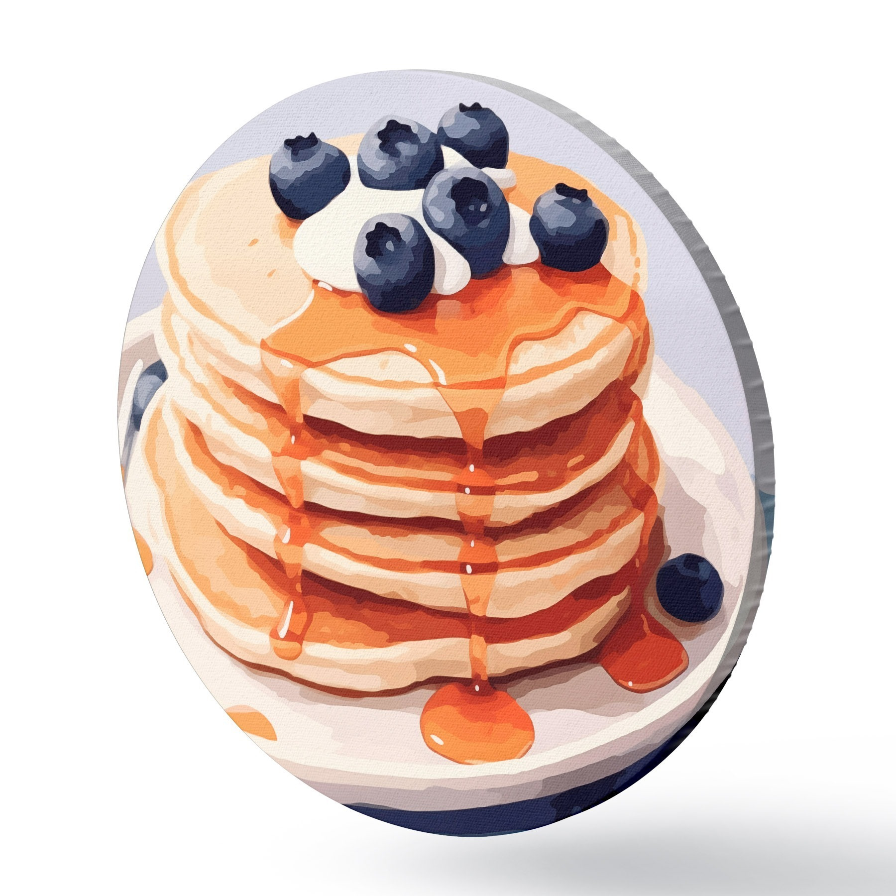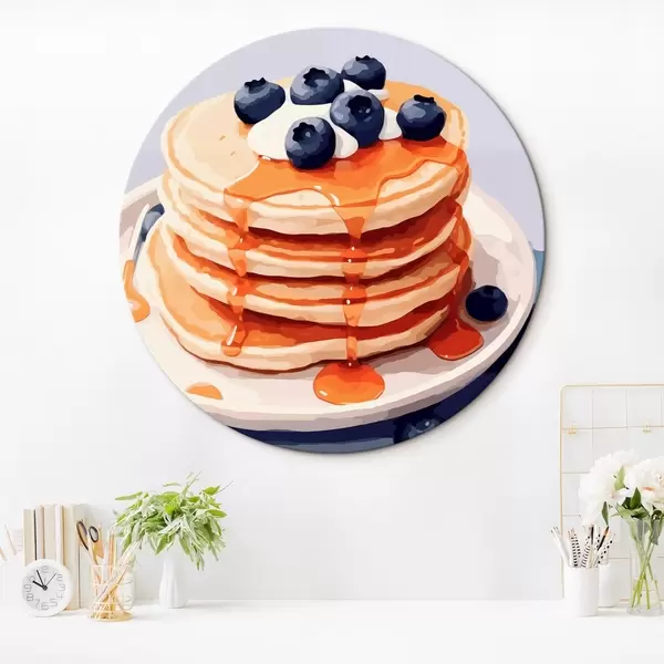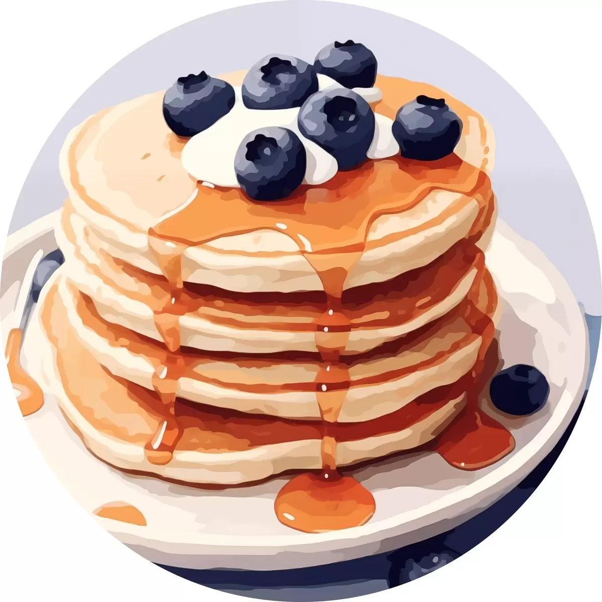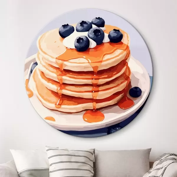 Tableaux ronds Crêpes avec sirop et myrtilles sur une assiette r43009