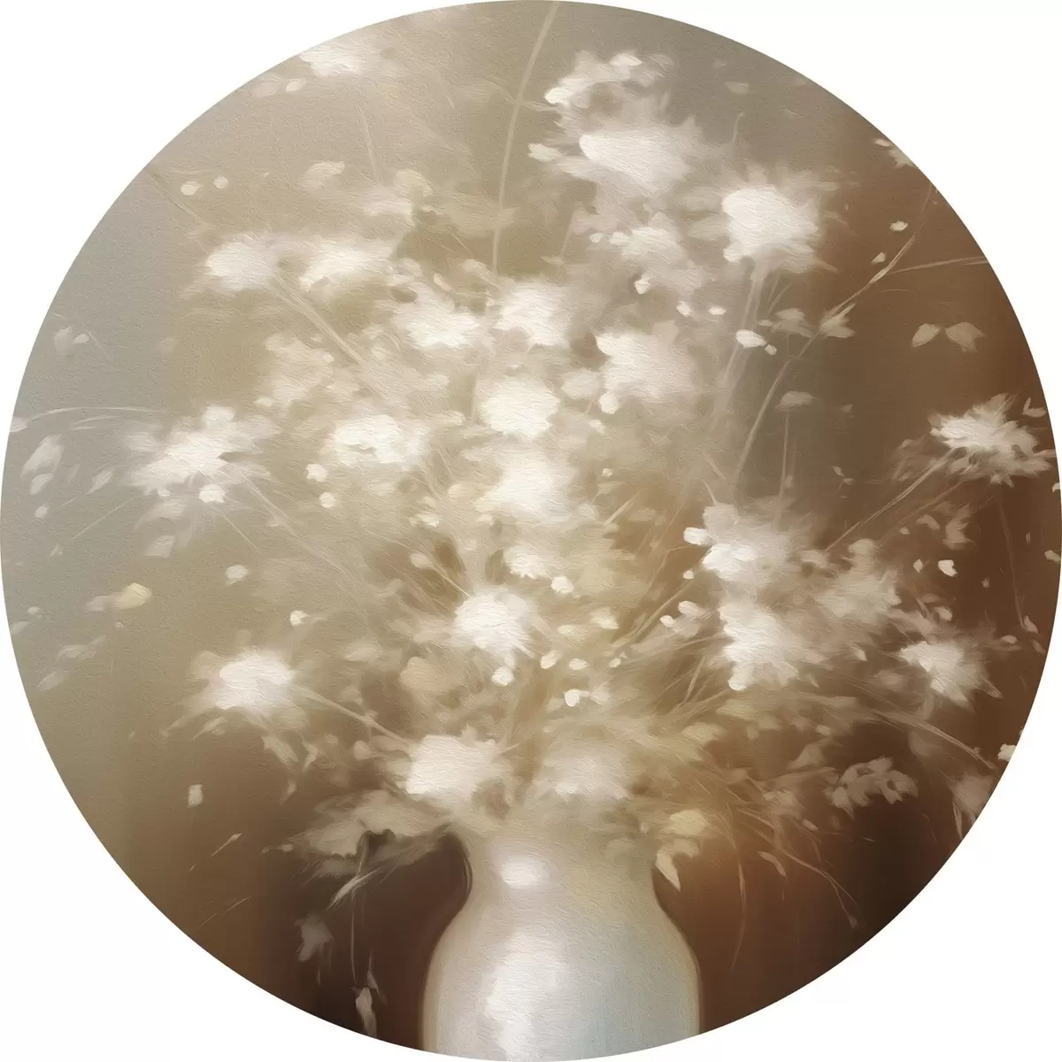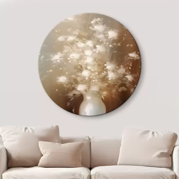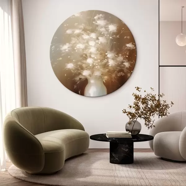 Tableaux ronds Vase avec plantes à fleurs blanches r43039