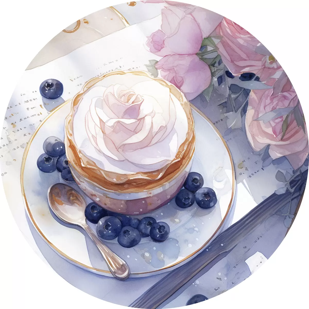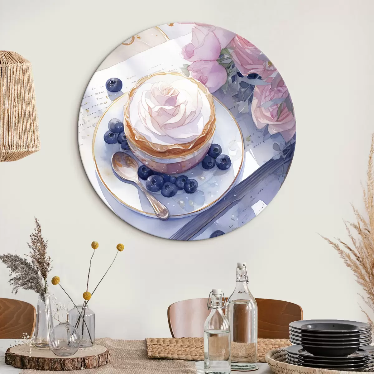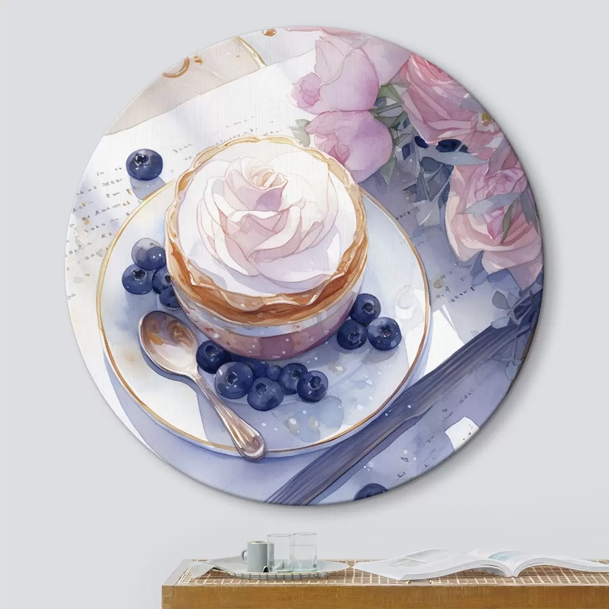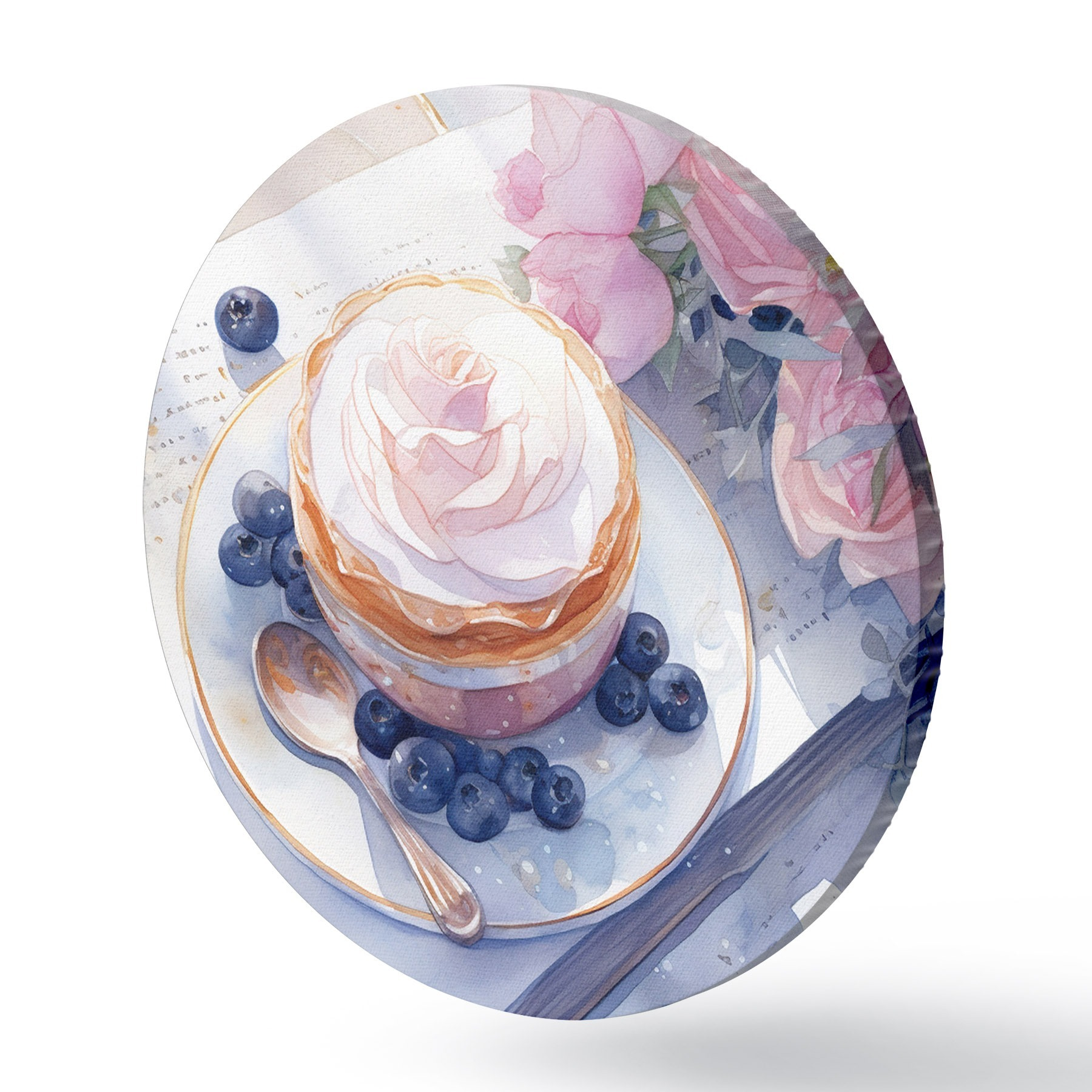 Tableaux ronds Cupcake aux myrtilles, style boho, aquarelle, roses roses, poétique r43053