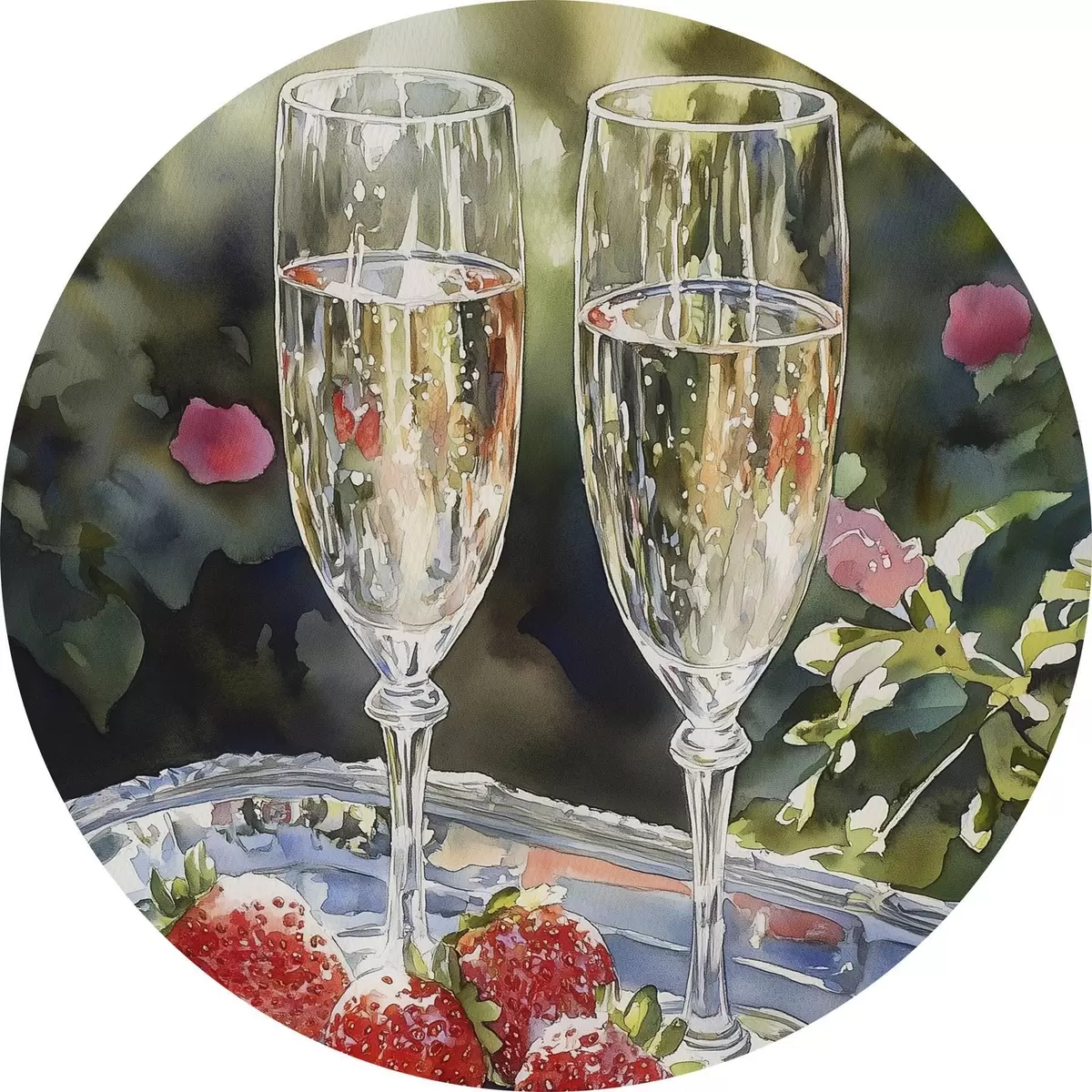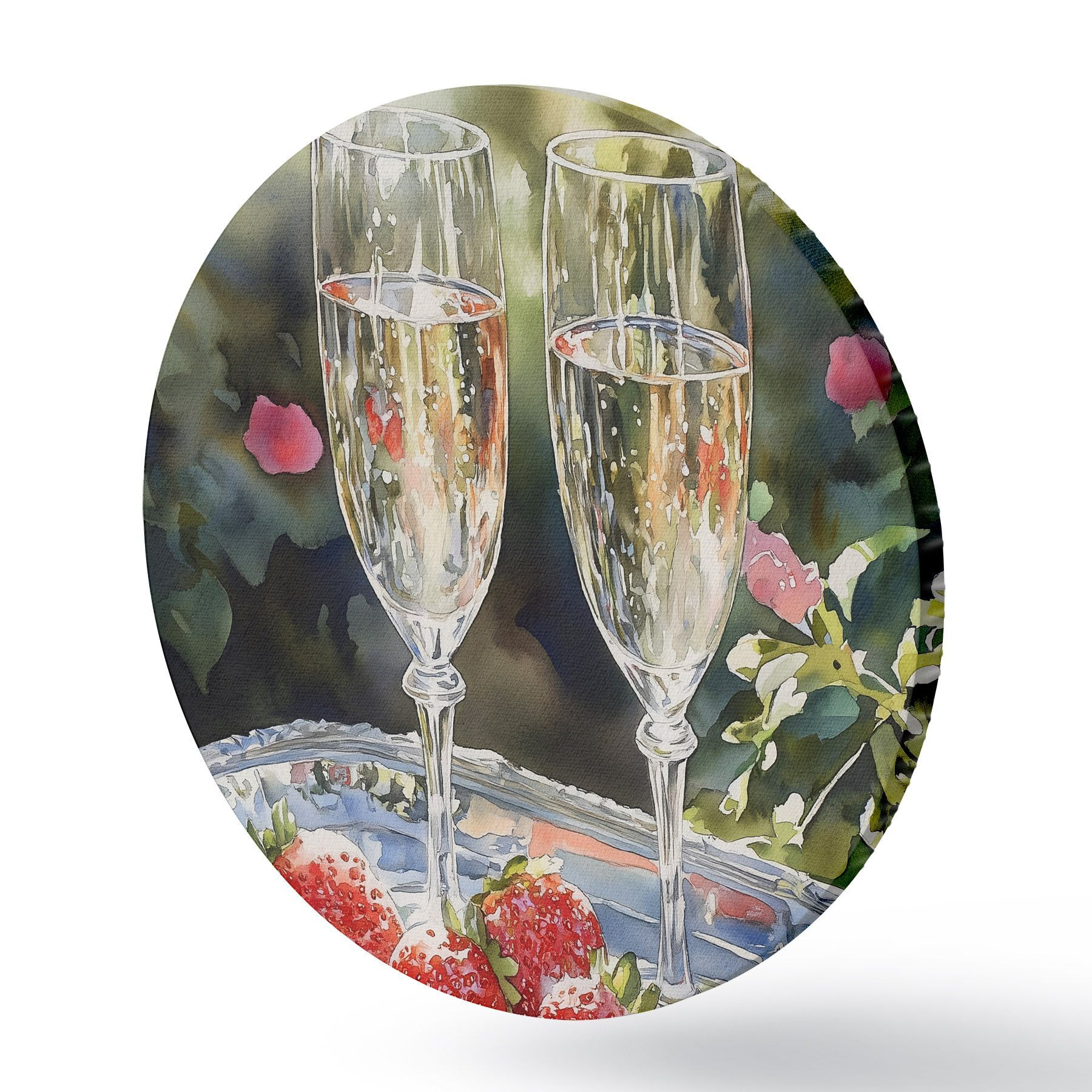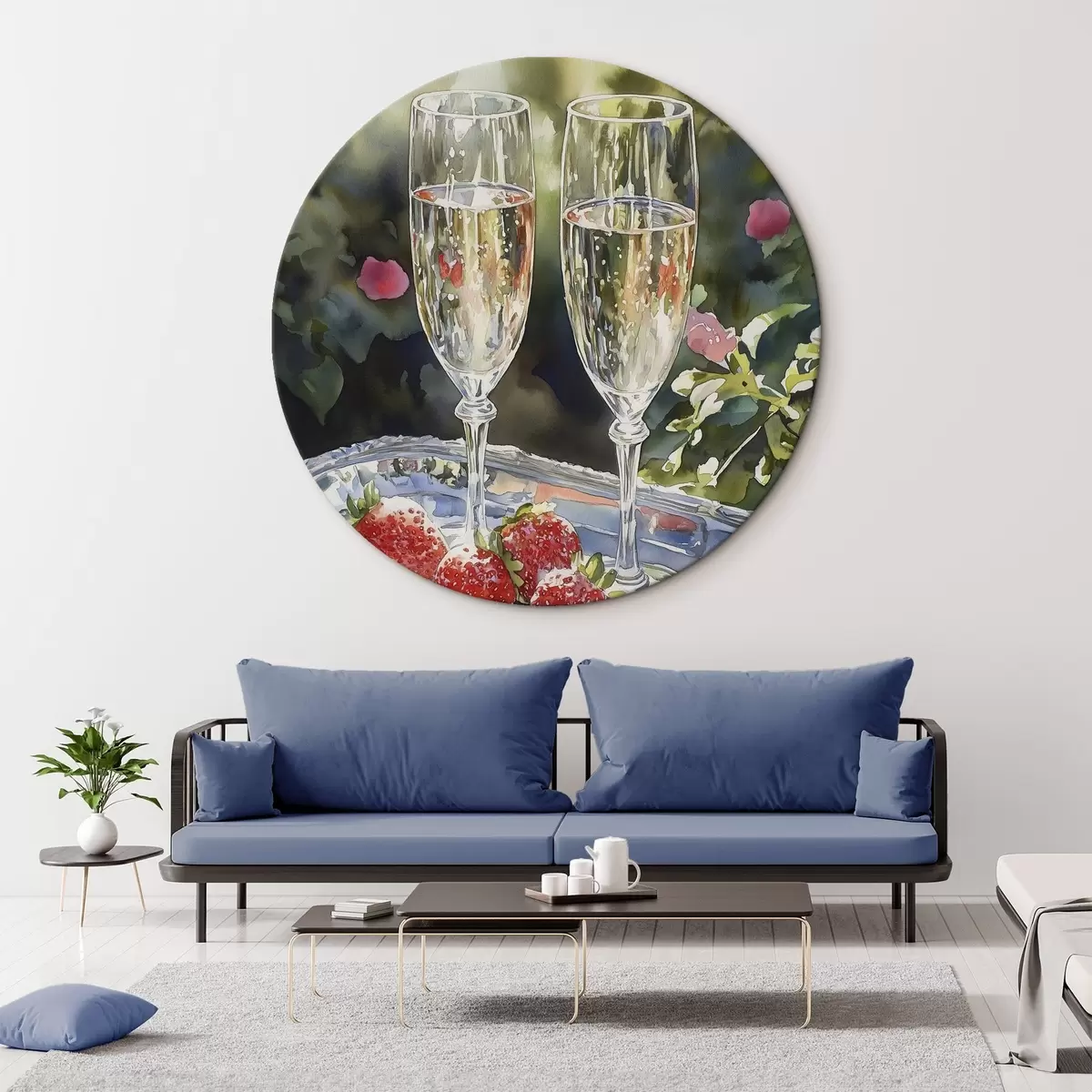 Tableaux ronds Coupes de champagne festives et pétillantes avec des fraises sur le plateau r43057