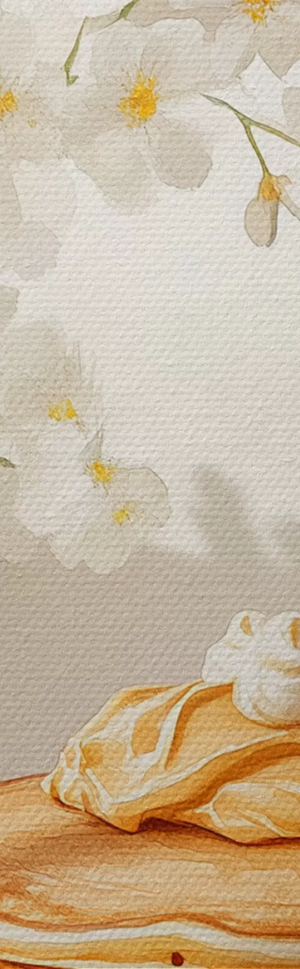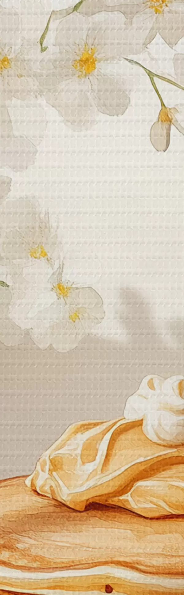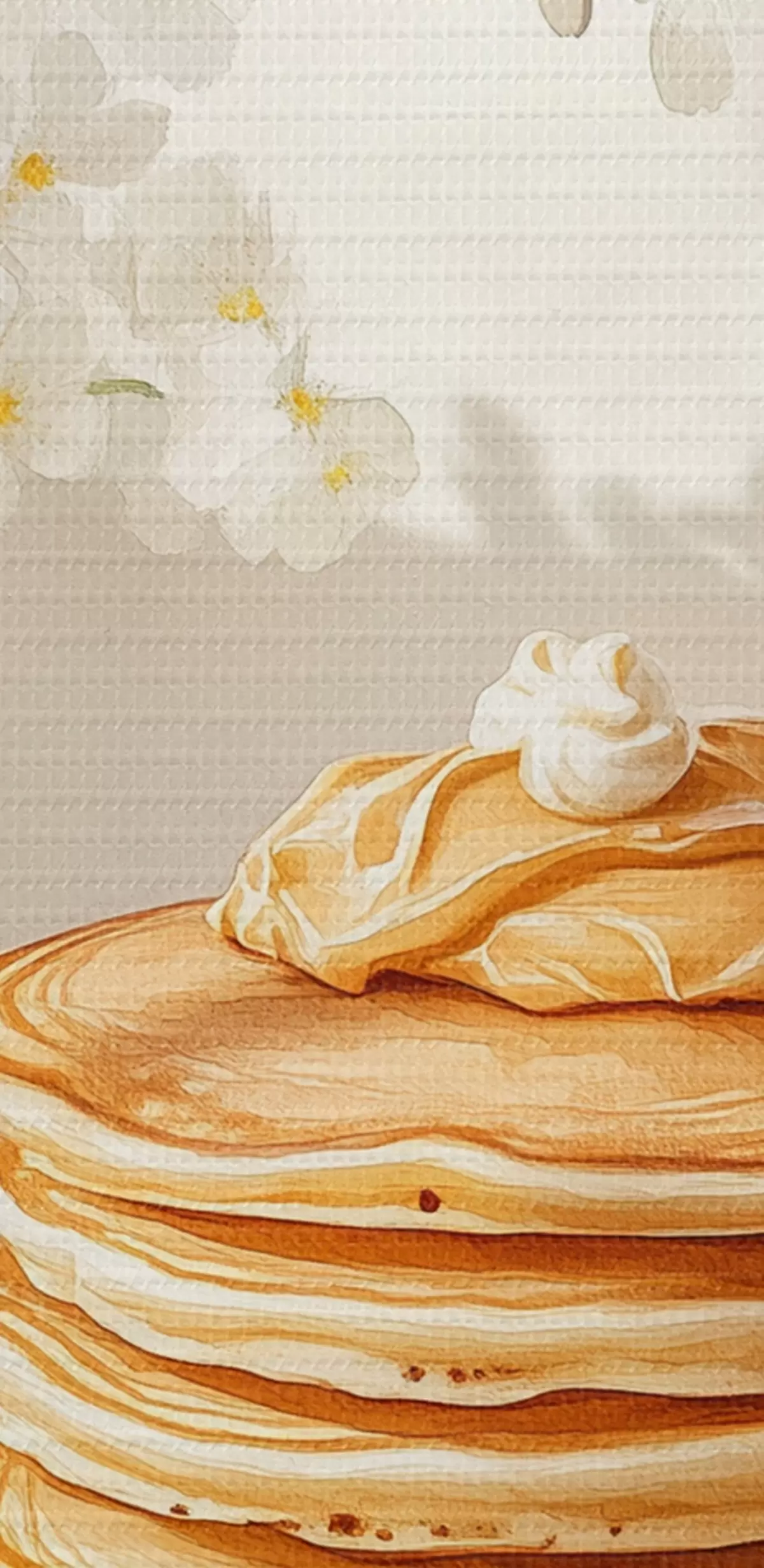 Image Délicieuses crêpes au beurre de cacahuètes, style aquarelle, vase avec fleurs blanches Nr r43063