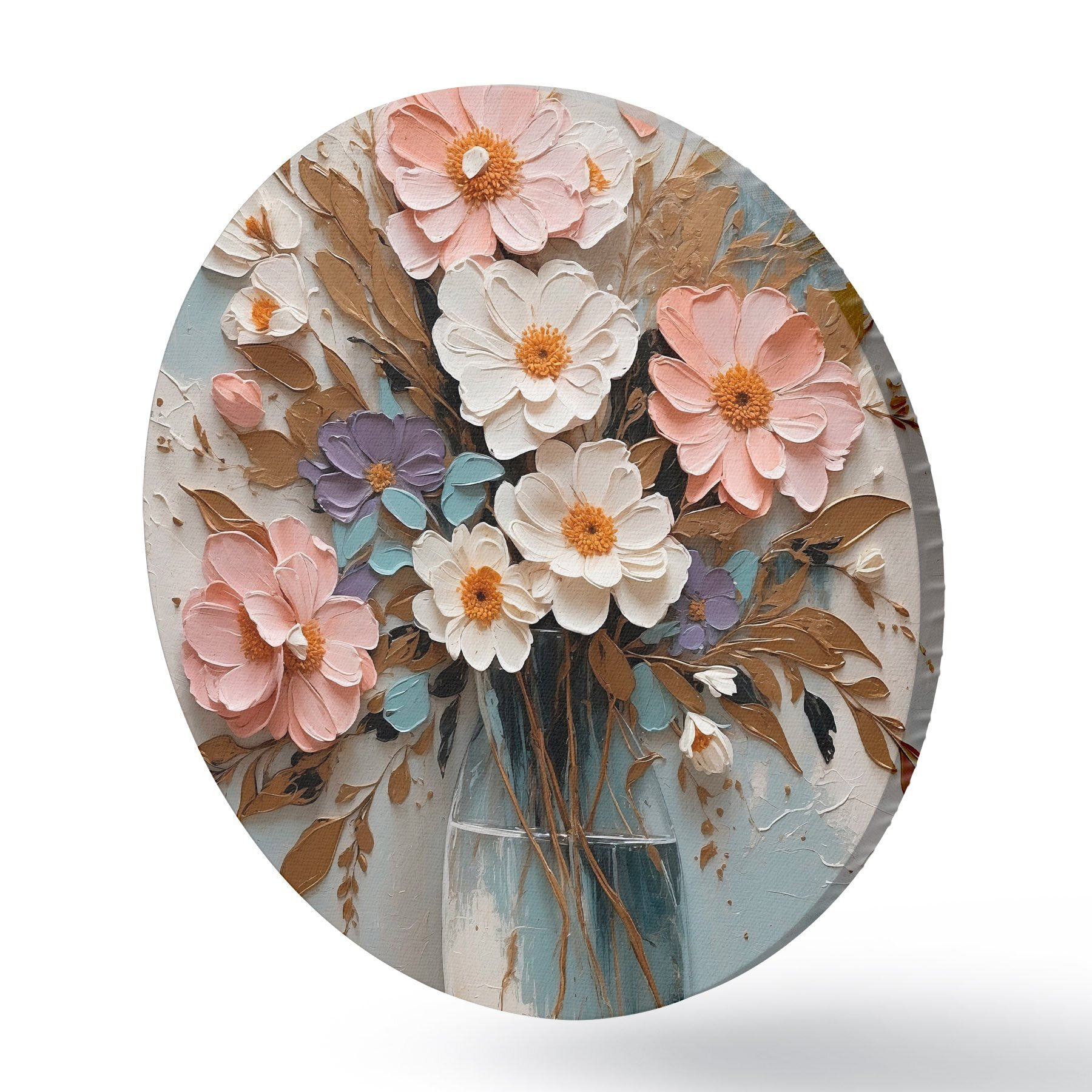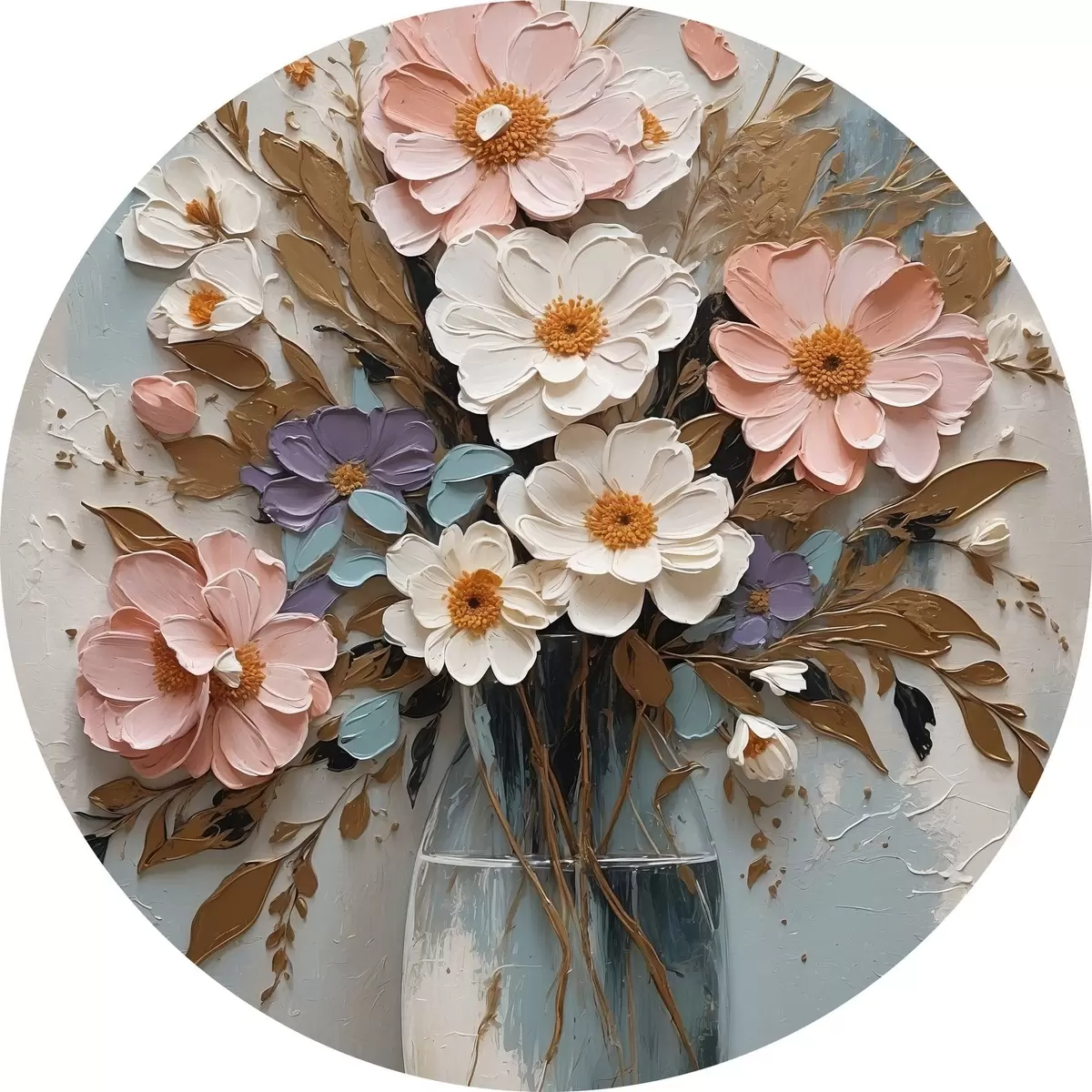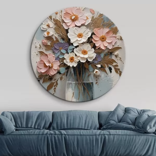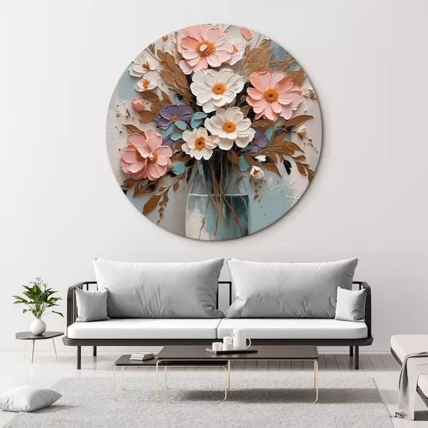 Tableaux ronds Fleurs roses et blanches dans un vase transparent r43089