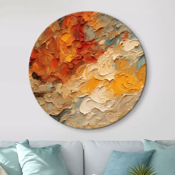 Tableaux ronds Peinture à l'huile abstraite rouge et blanche r43092