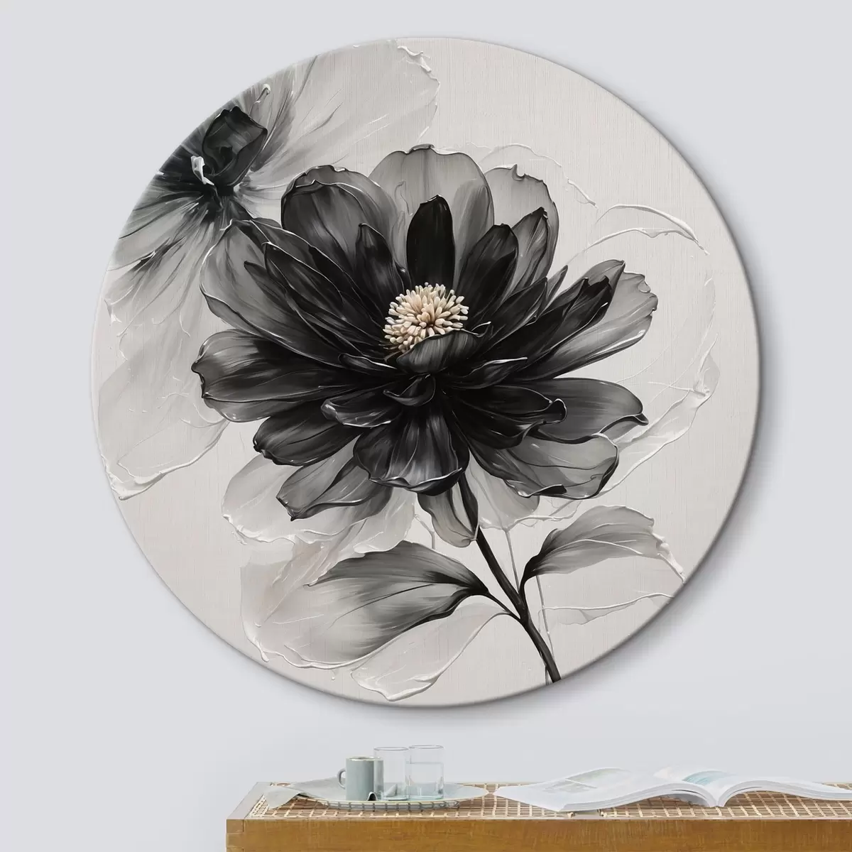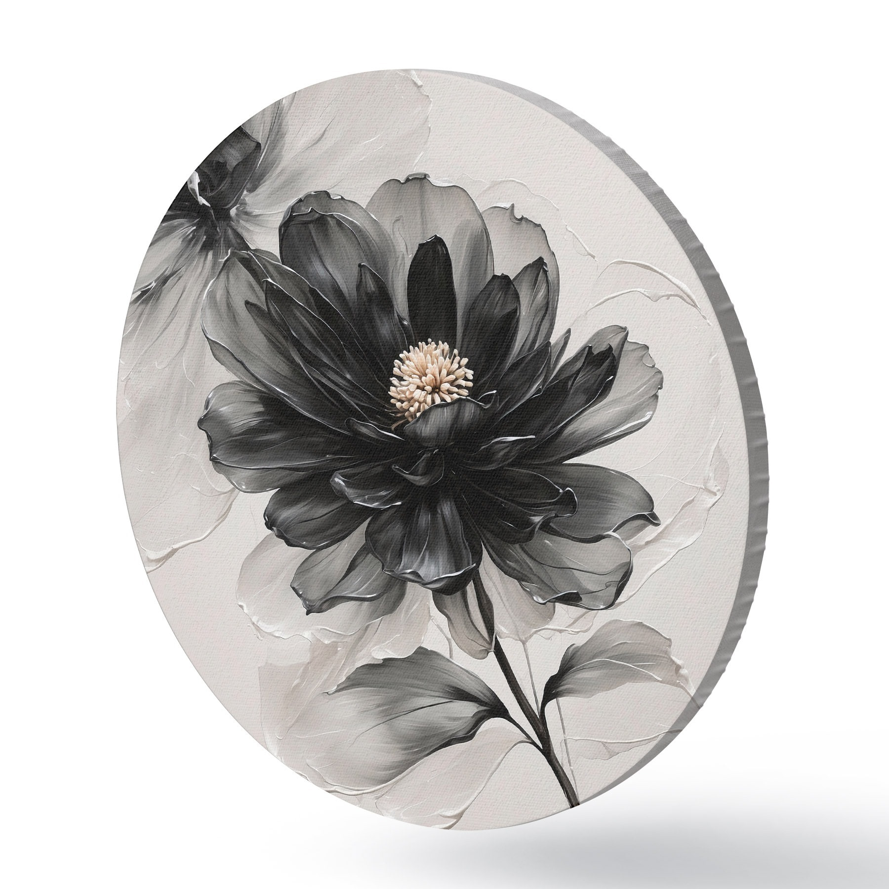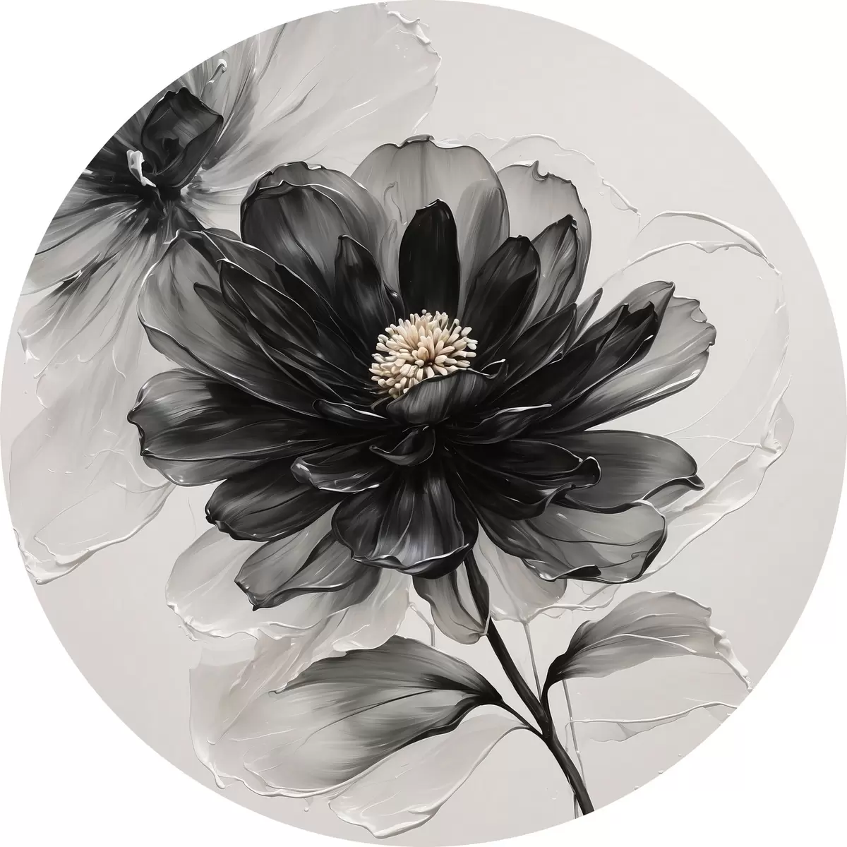 Tableaux ronds Fleur noire transparente sur fond blanc r43099