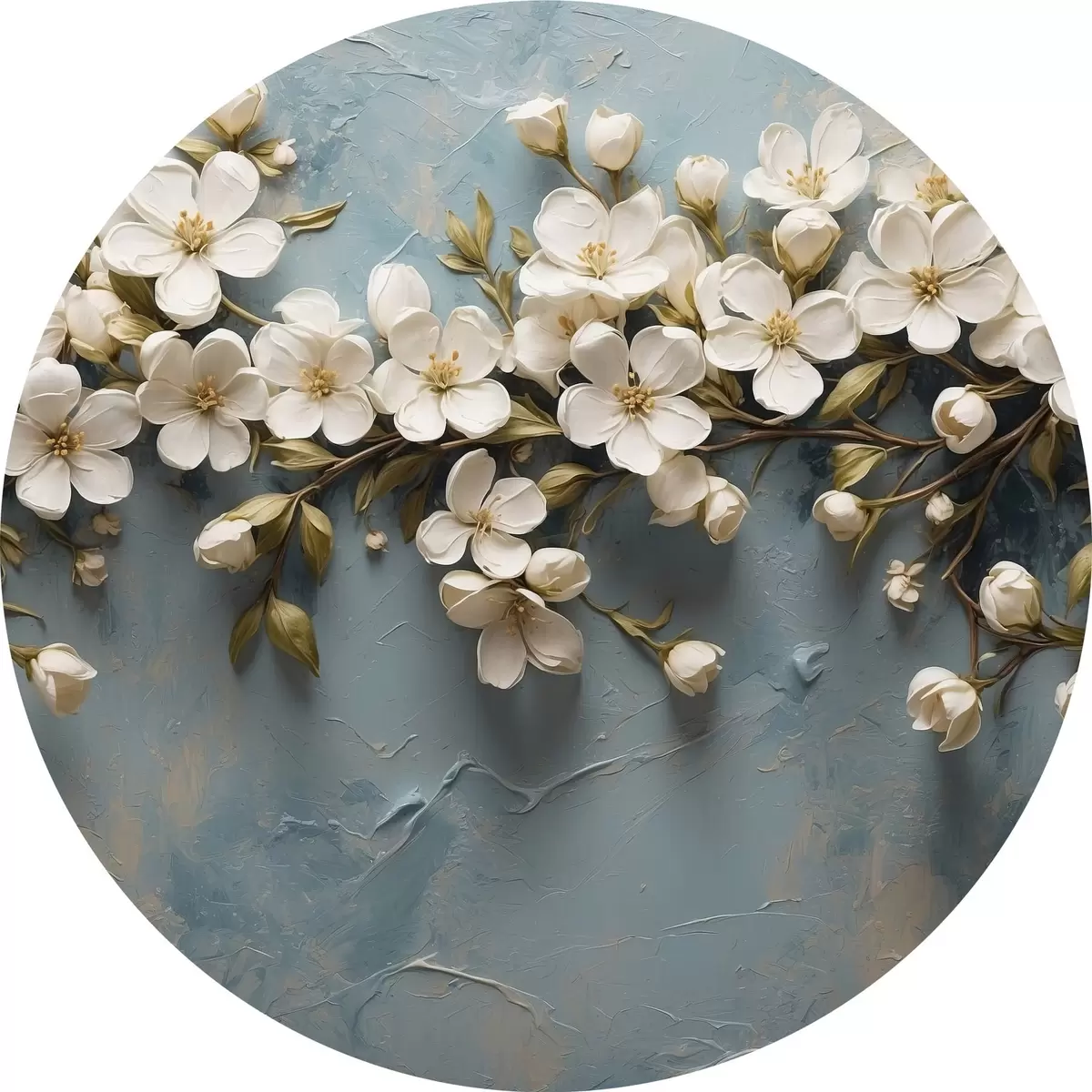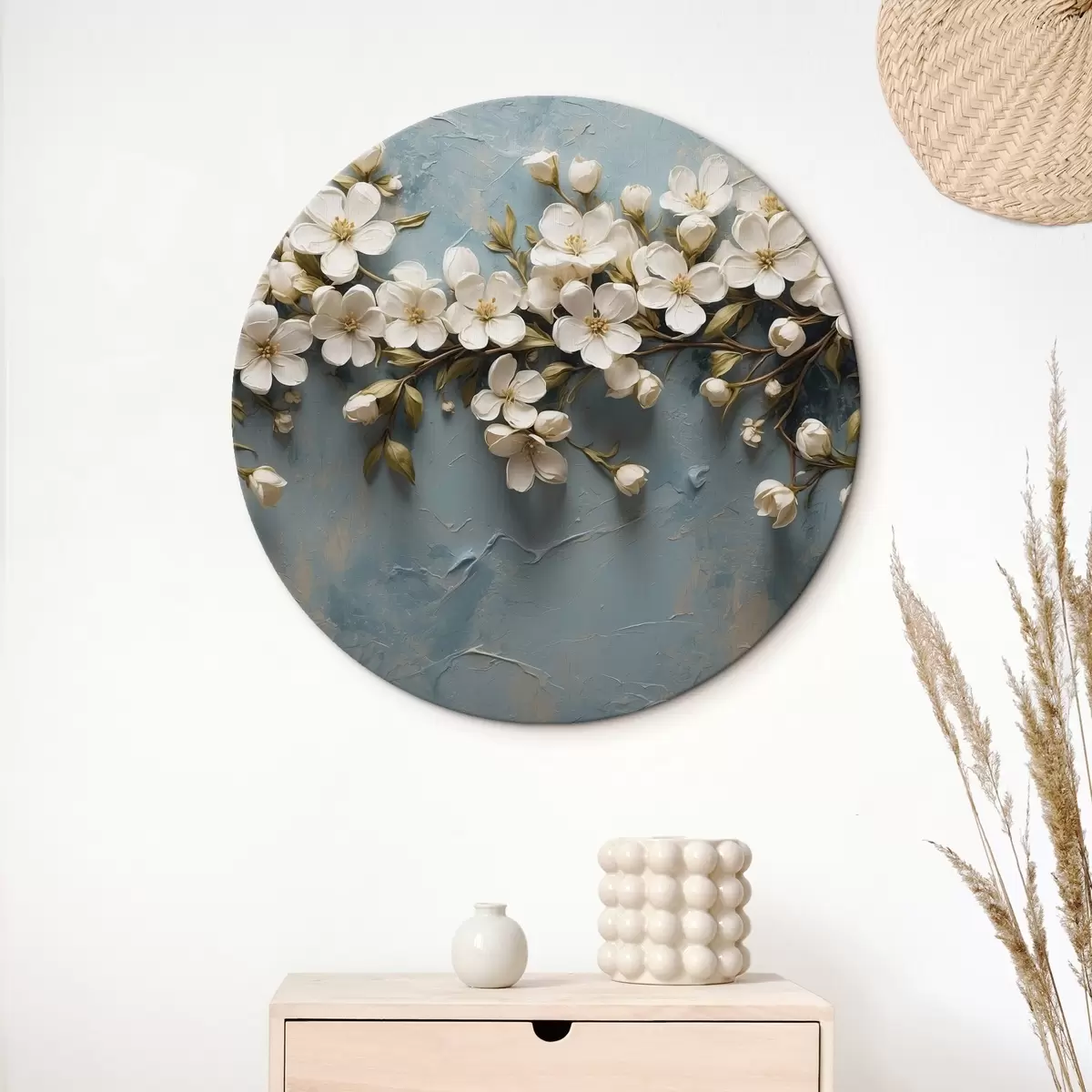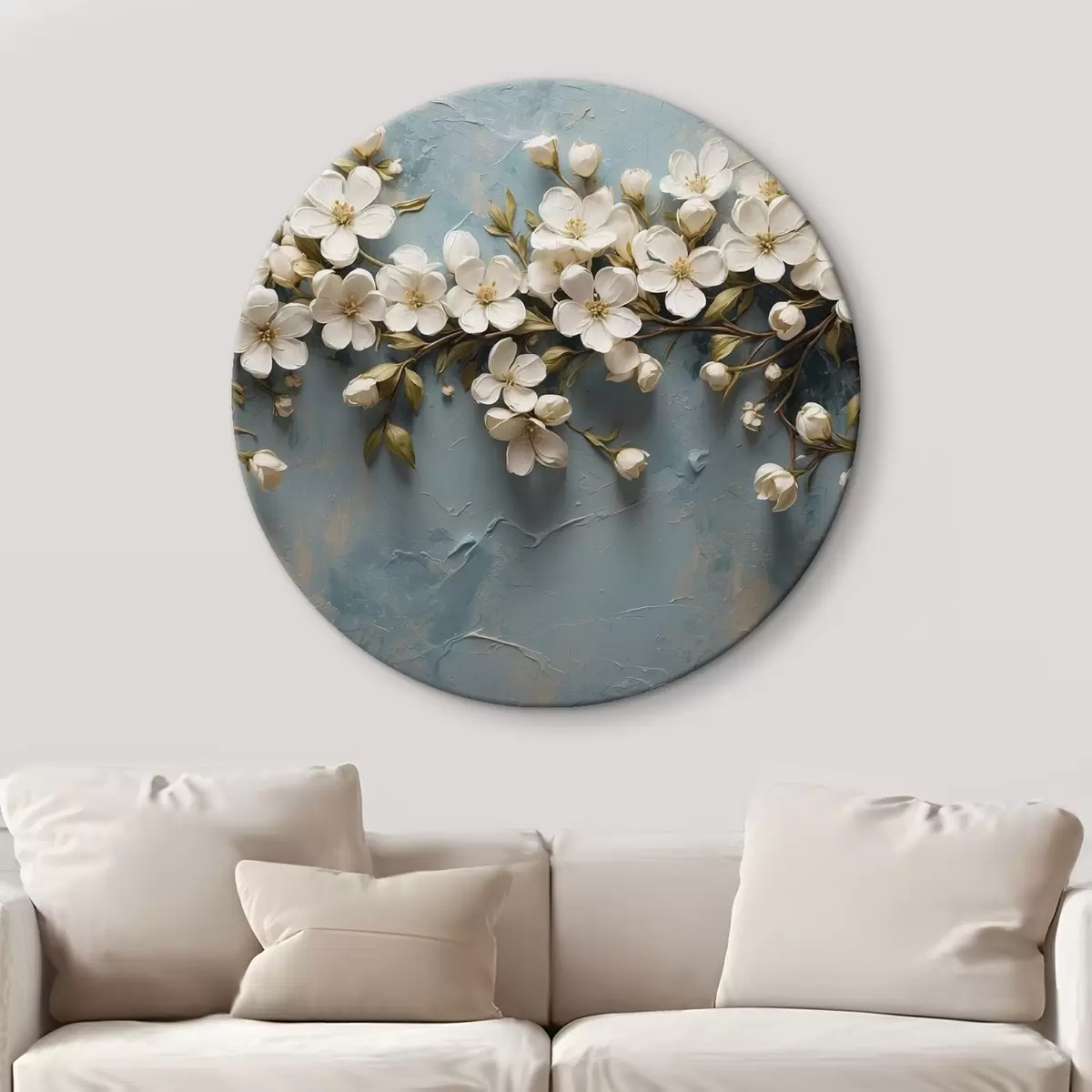 Tableaux ronds Branche avec fleurs sur fond de style acrylique r43111