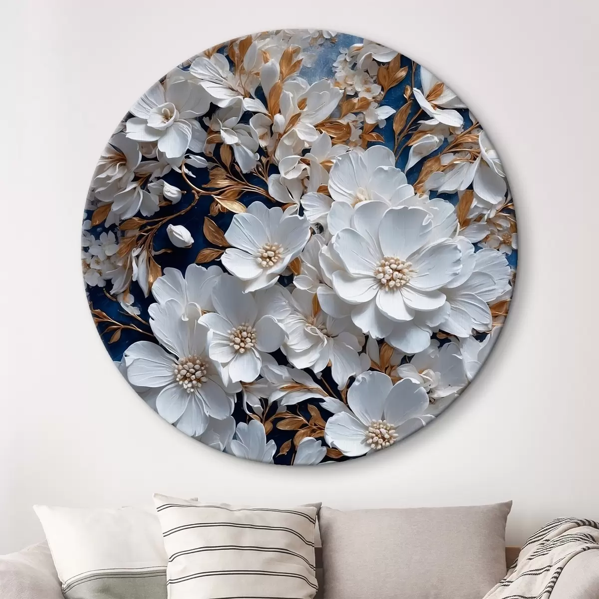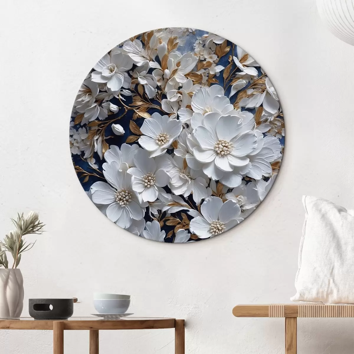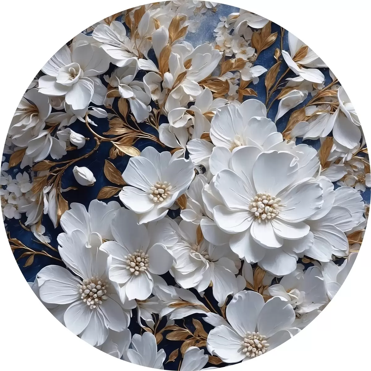 Tableaux ronds Fleurs blanches sur fond bleu r43116