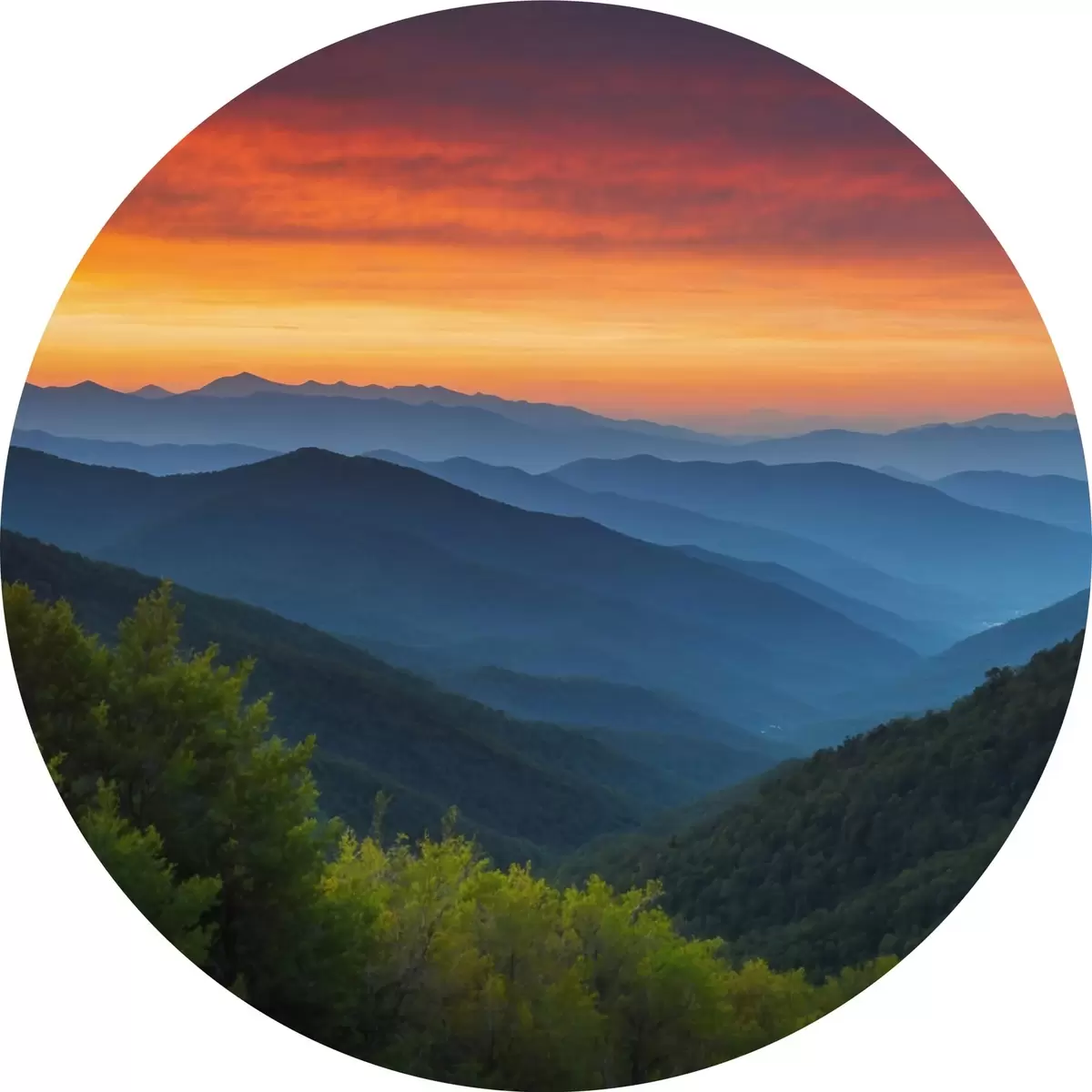 Tableaux ronds Vue des montagnes à l'aube r43119