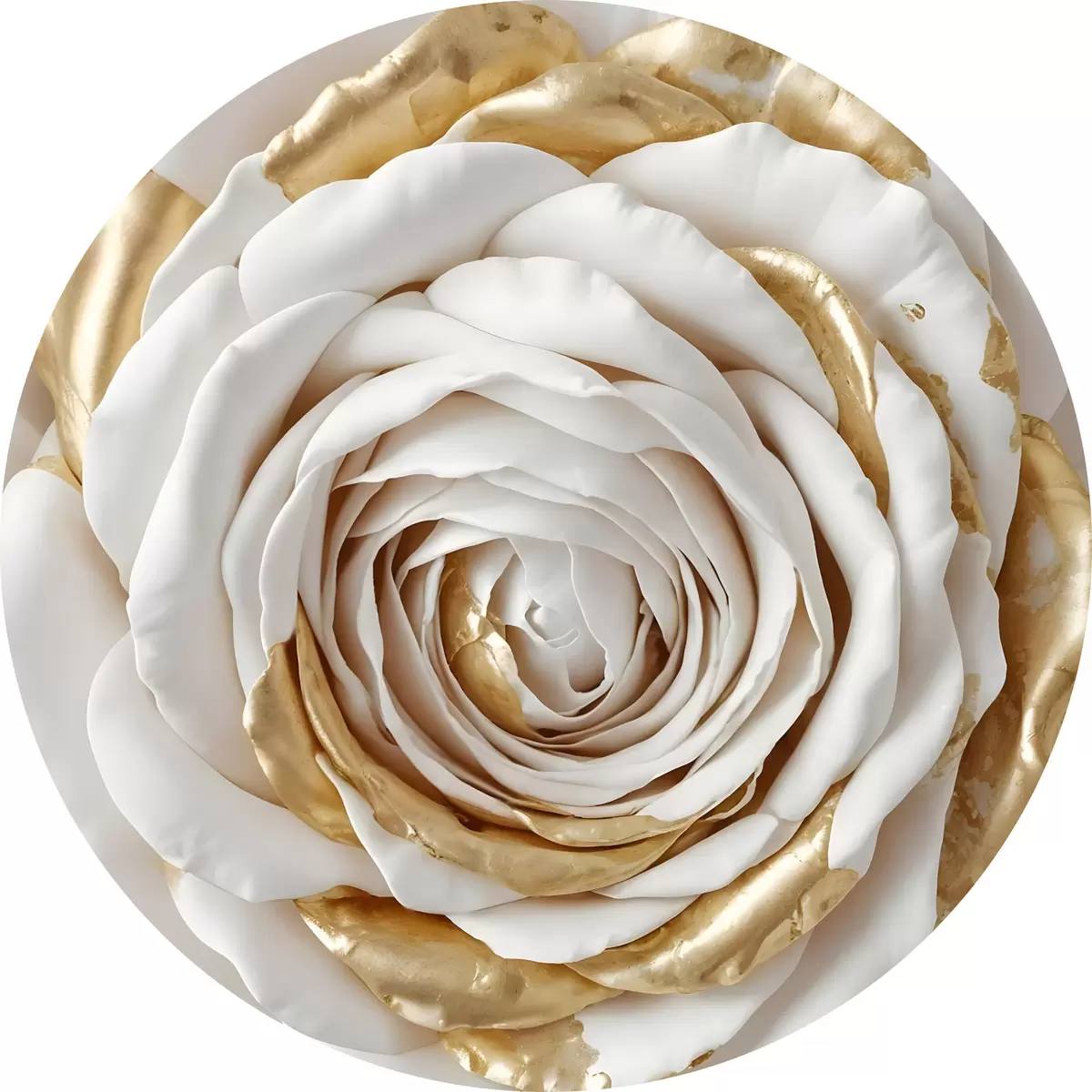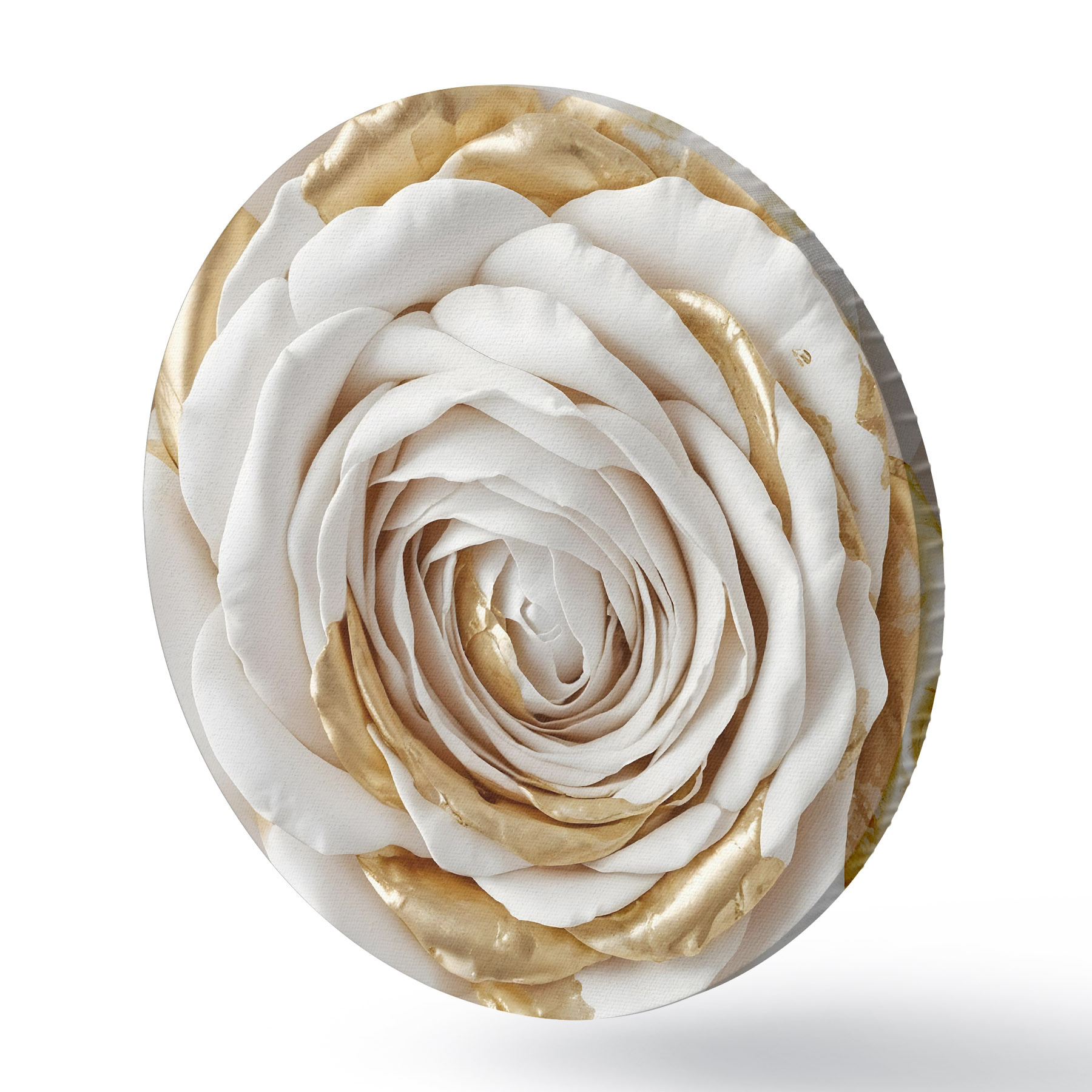 Tableaux ronds Une rose décorative minimaliste blanche avec des accents jaunes, les pétales sont superposés et enroulés r43160