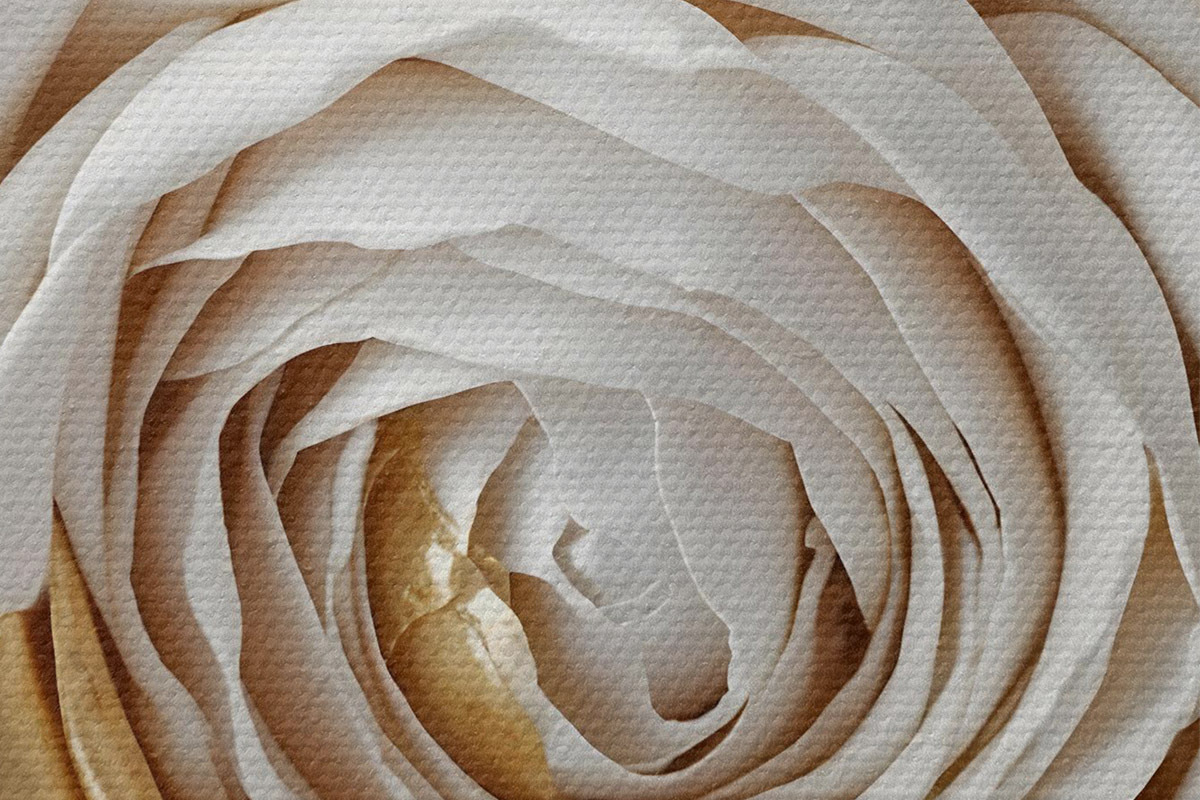 Image Une rose décorative minimaliste blanche avec des accents jaunes, les pétales sont superposés et enroulés Nr r43160