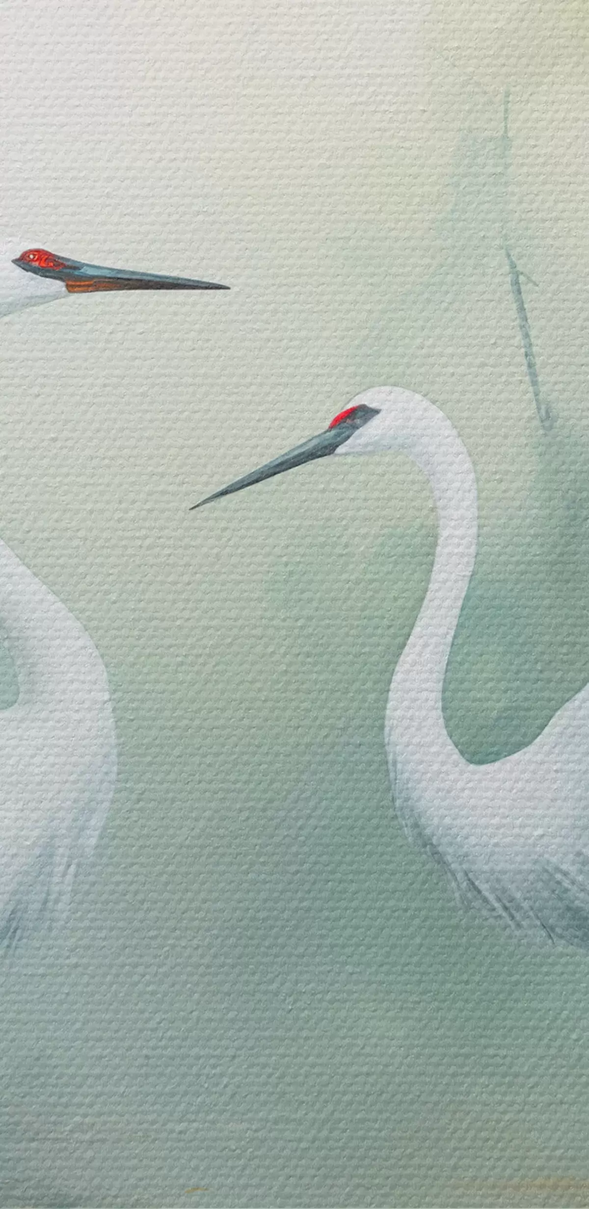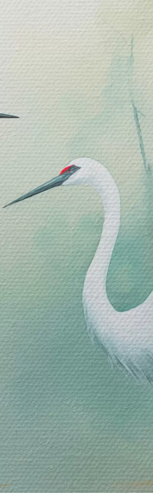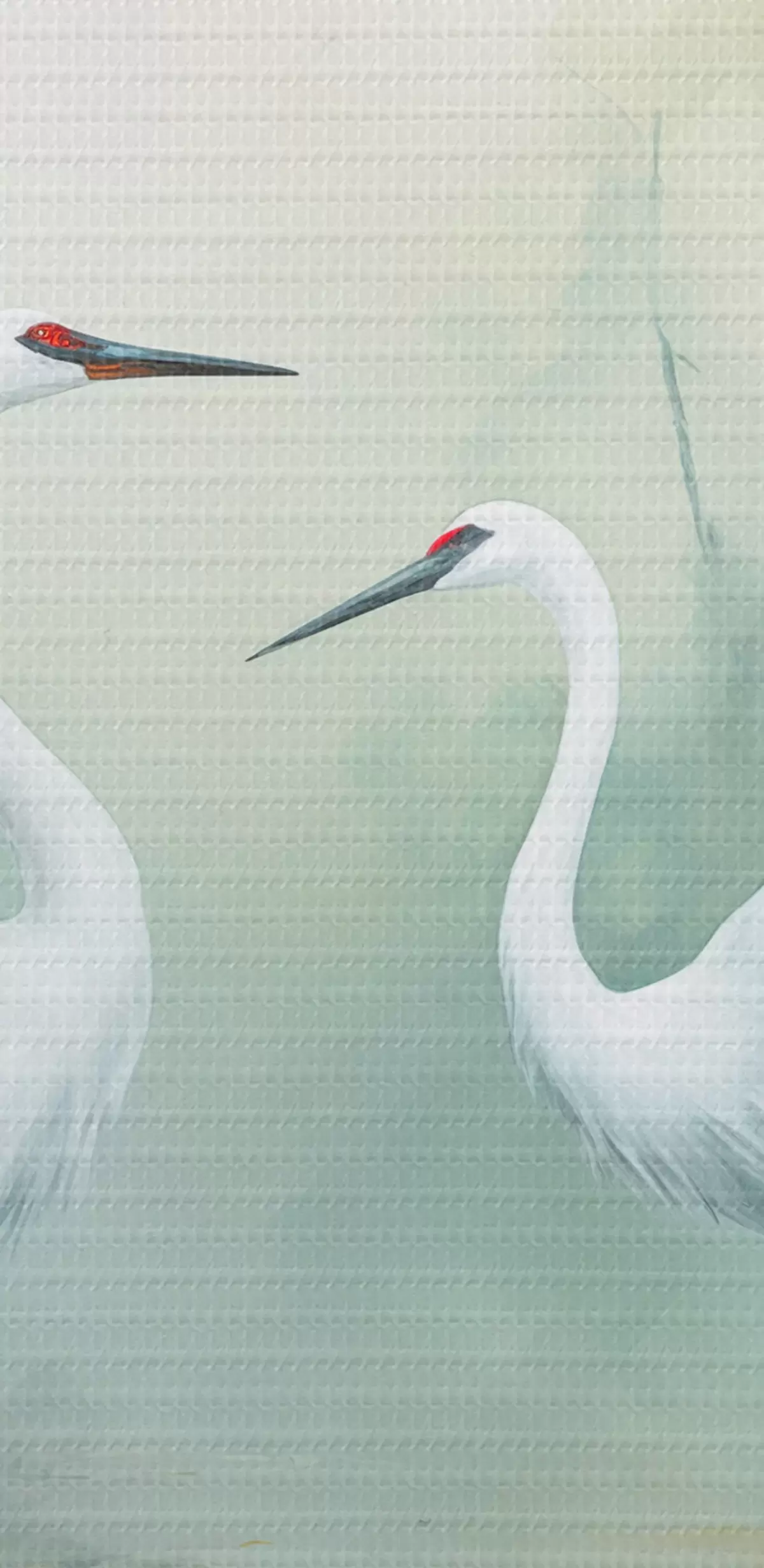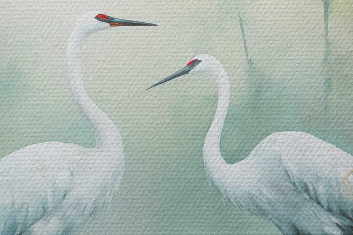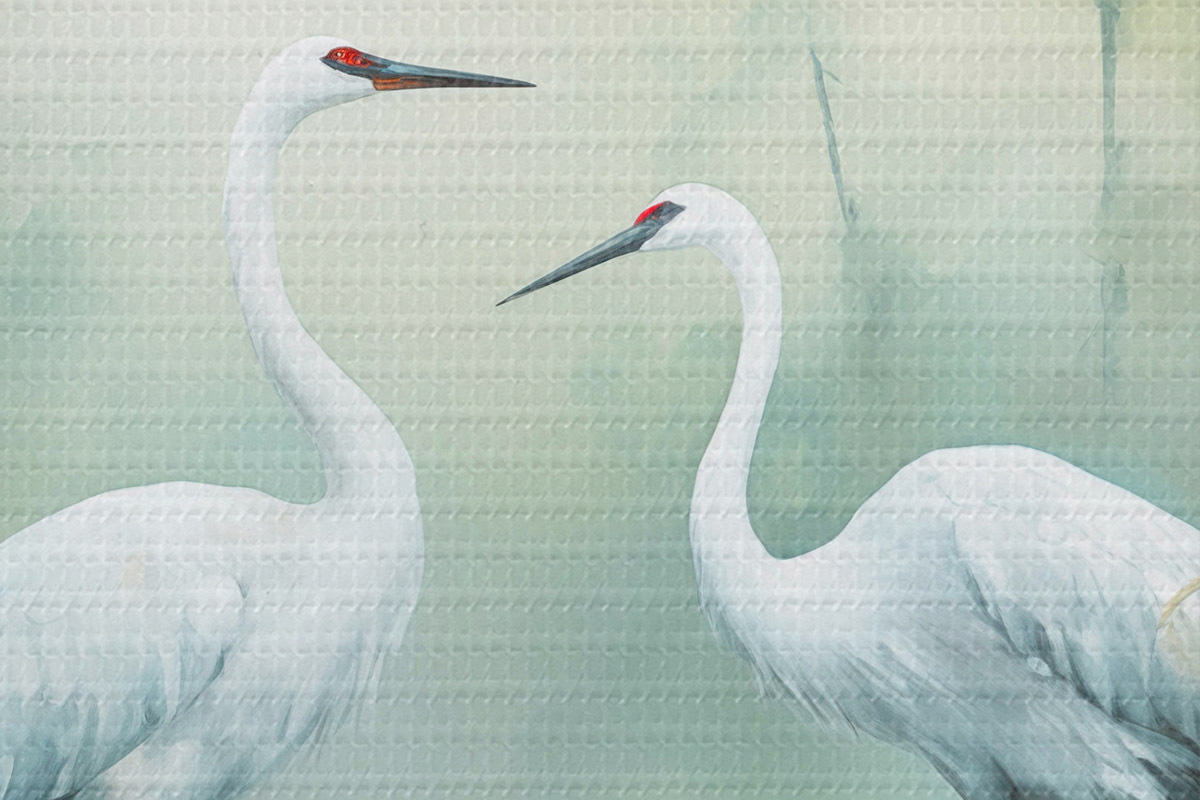 Image Deux grues blanches se tenant dans un étang, entourées d'une forêt verdoyante avec un éclairage doux et diffus Nr r43166