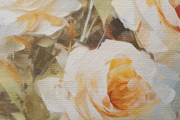 Image Roses blanches avec orange, sur un fond bleu clair doux, avec des coups de pinceau visibles et un style pictural Nr r43175