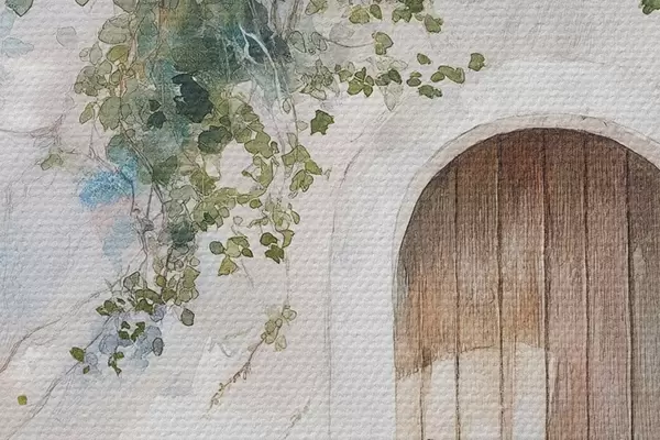 Image Belle maison blanche avec arbre en fleurs, méditerranéenne, style aquarelle Nr r43179