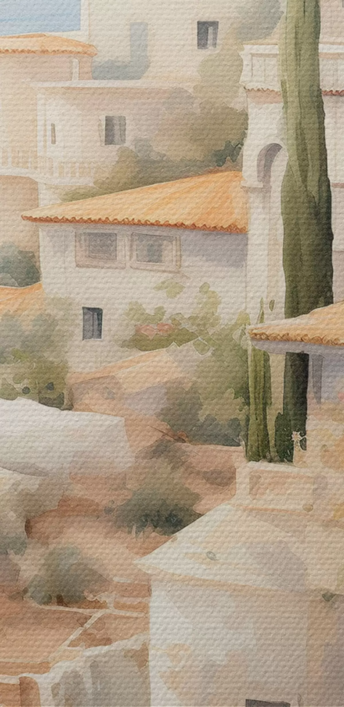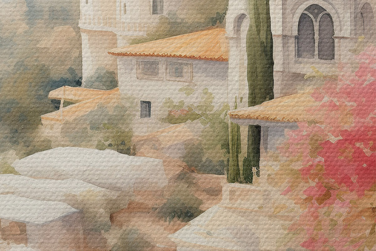Image Espagne, paysage d'été, architecture méditerranéenne, style aquarelle Nr r43181