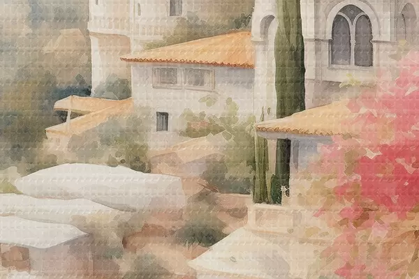 Image Espagne, paysage d'été, architecture méditerranéenne, style aquarelle Nr r43181