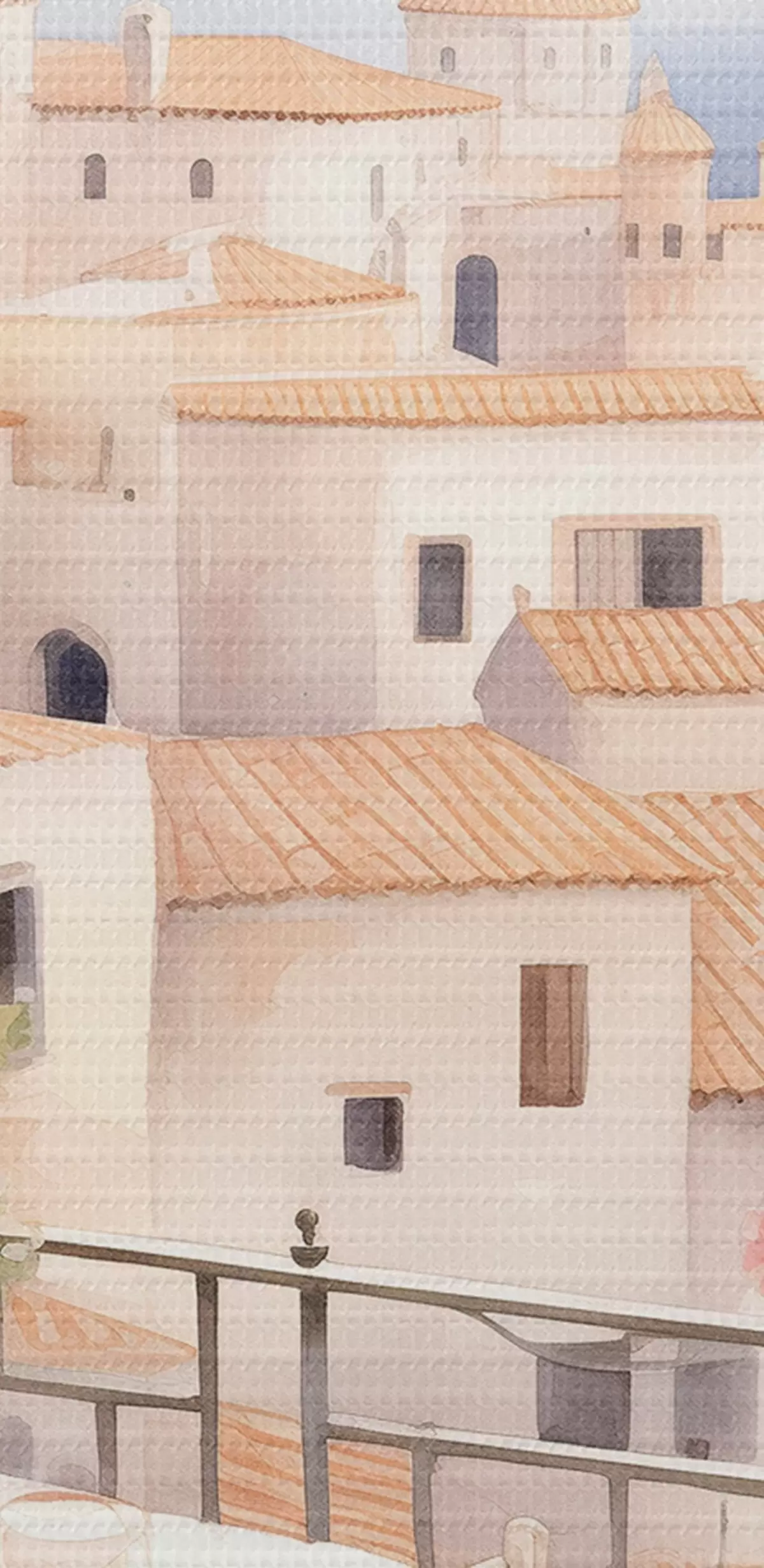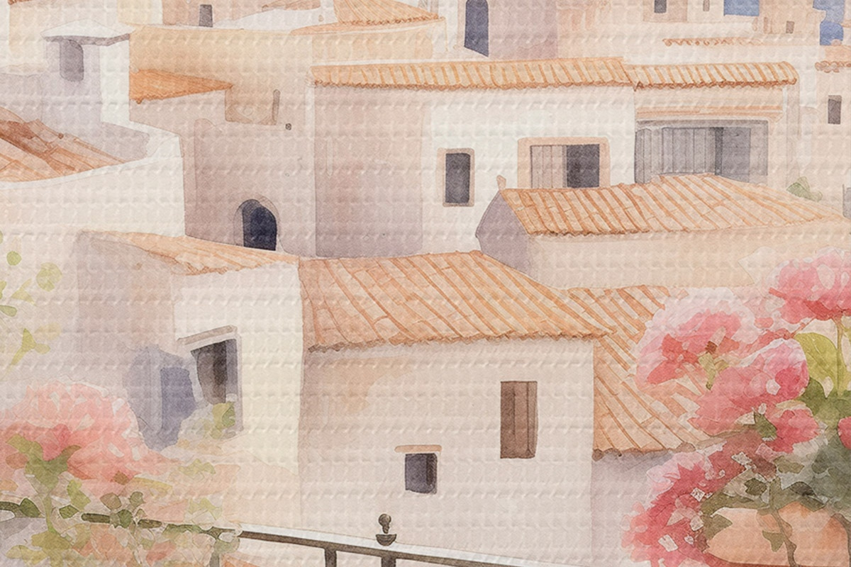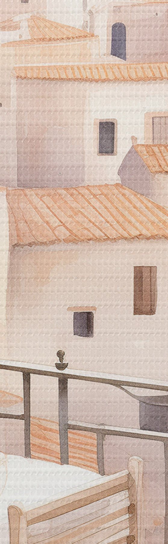 Image Coucher de soleil sur le balcon, Italie, architecture, fleurs épanouies, style aquarelle Nr r43184