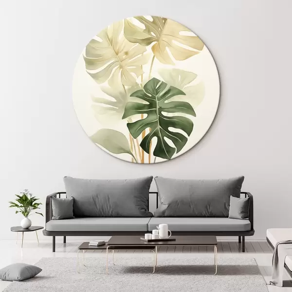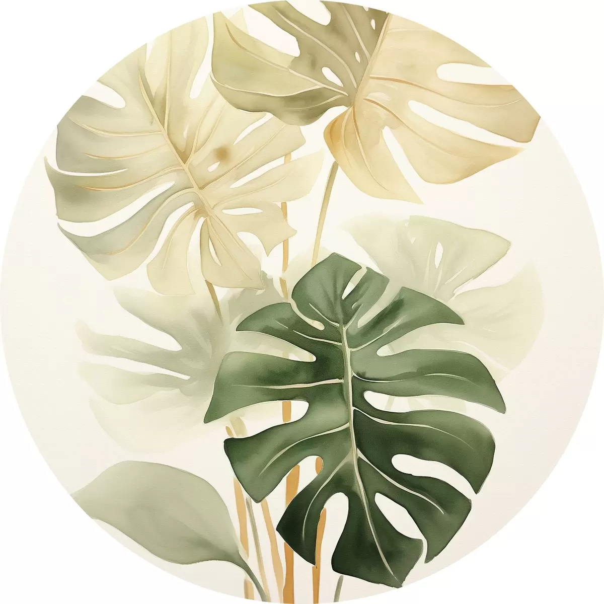 Tableaux ronds Feuilles de monstera, imitation d'aquarelle r43209