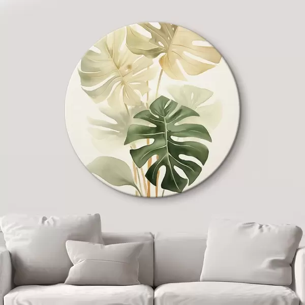Tableaux ronds Feuilles de monstera, imitation d'aquarelle r43209