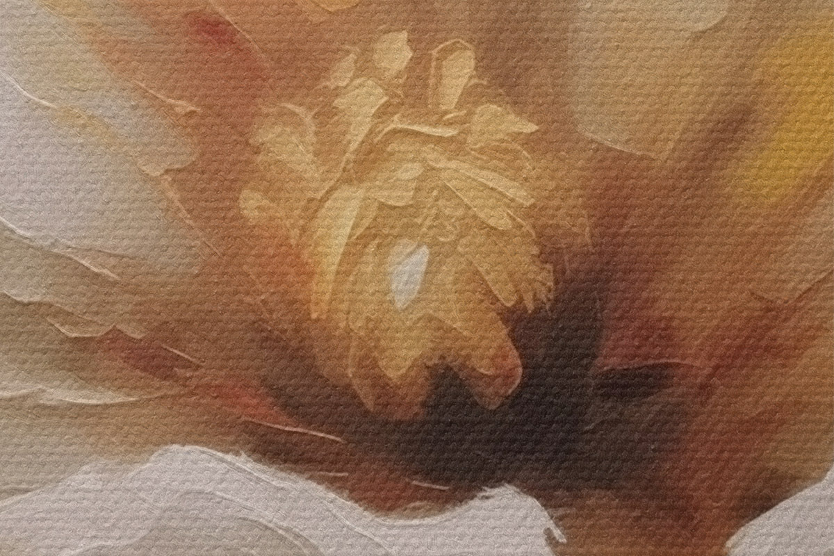 Trois types de matériaux peuvent être commandés : Economic Canvas - matériau dense et durable pour l'impression numérique, identique à la toile de peintre, surface imperméable, reproduction réaliste des détails, matériau à grain moyen. Premium Canvas - la texture ressemble à celle d'une toile de peintre (petits fils entrelacés). Reproduction douce et détaillée de l'image sur une surface mate. Eco-Premium - tissu 100 % coton de haute qualité. Grâce aux fibres naturelles de coton, le matériau est durable et résistant à l'usure. Excellente reproduction des couleurs et des détails.