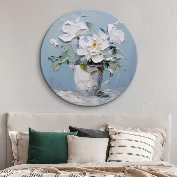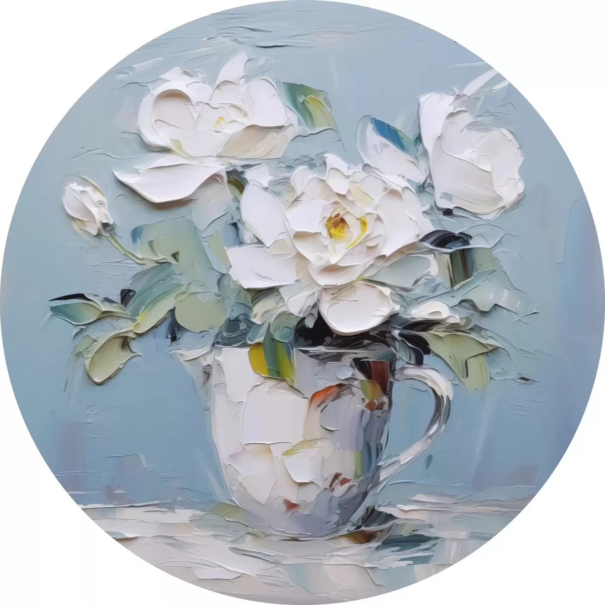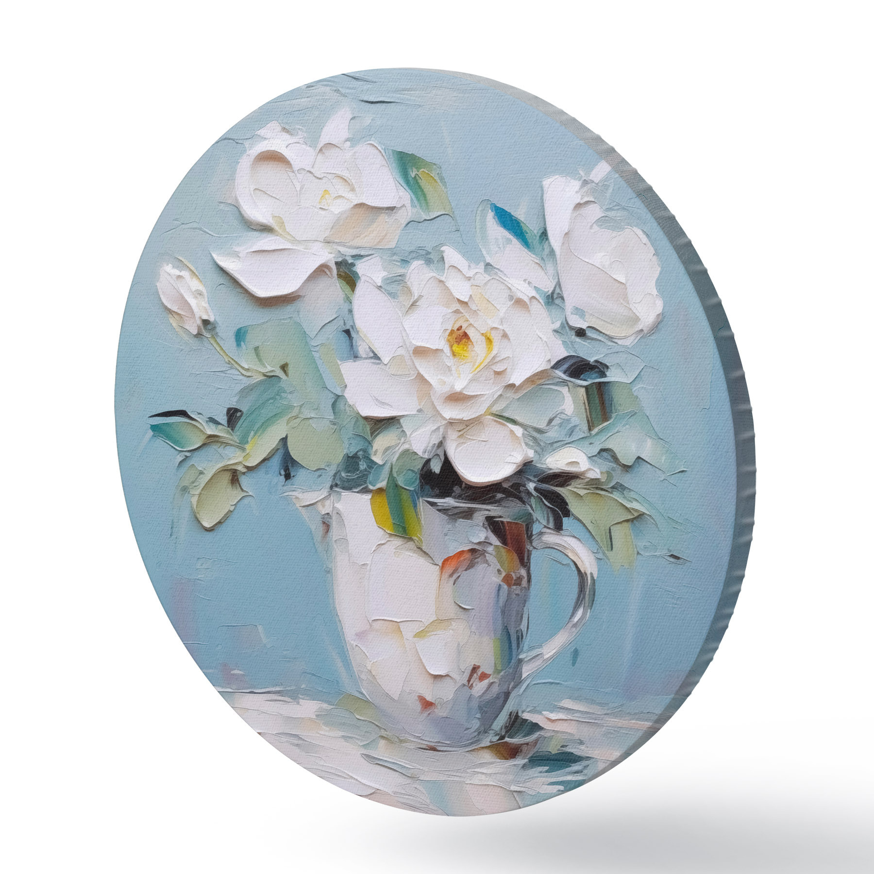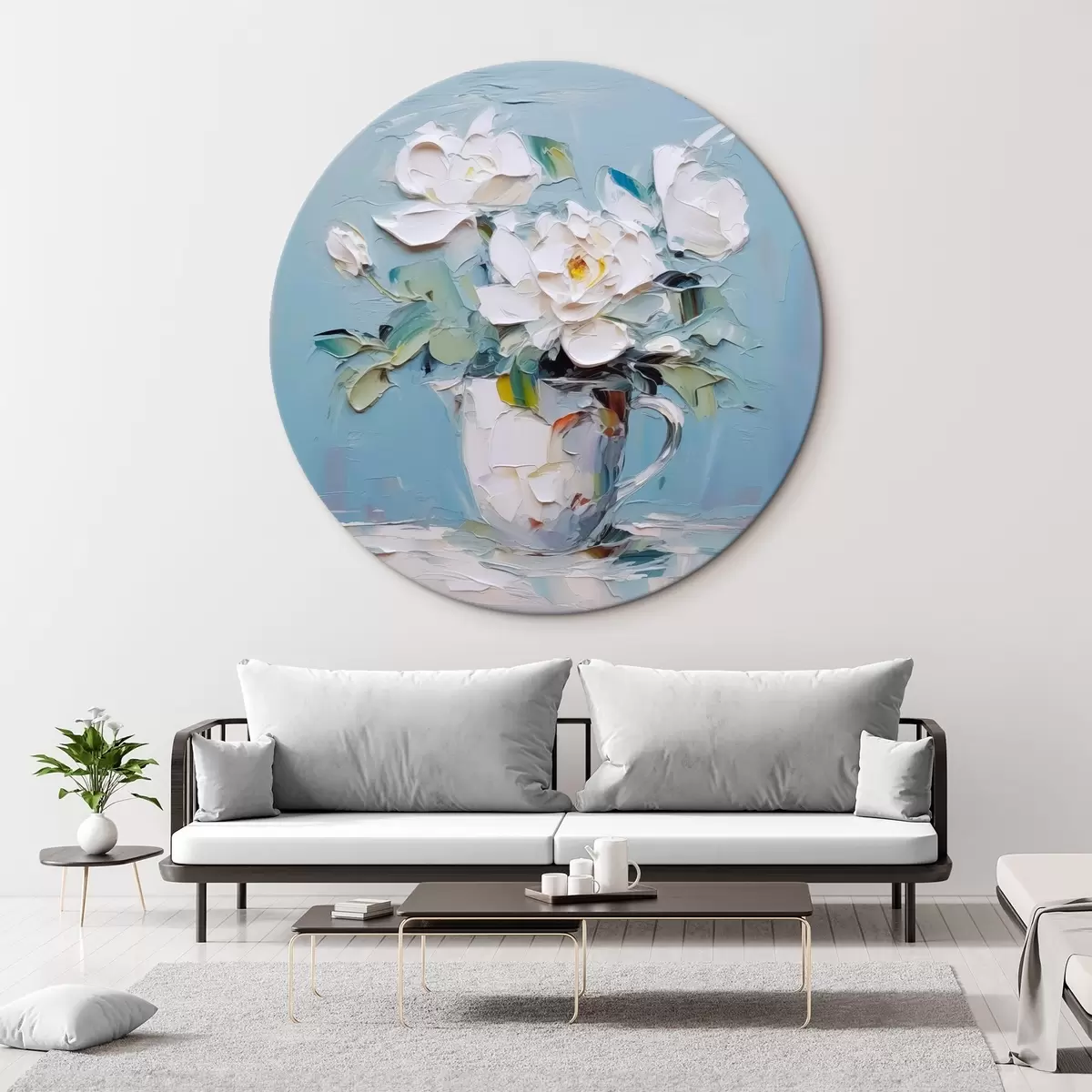 Tableaux ronds Fleurs blanches dans une coupe imitation peinture r43225