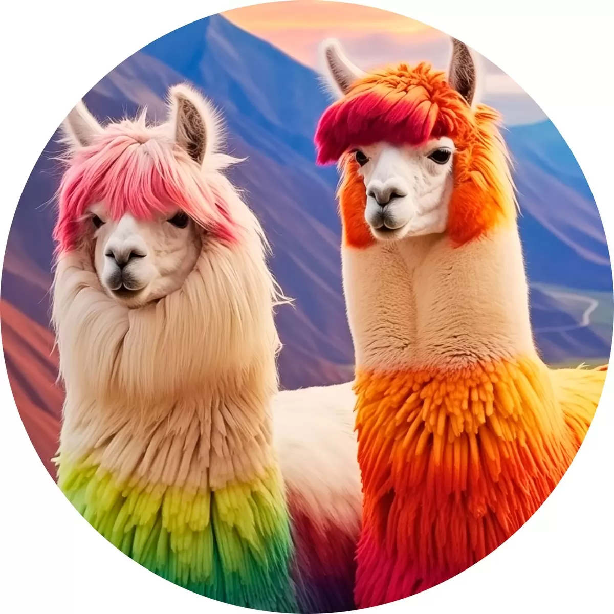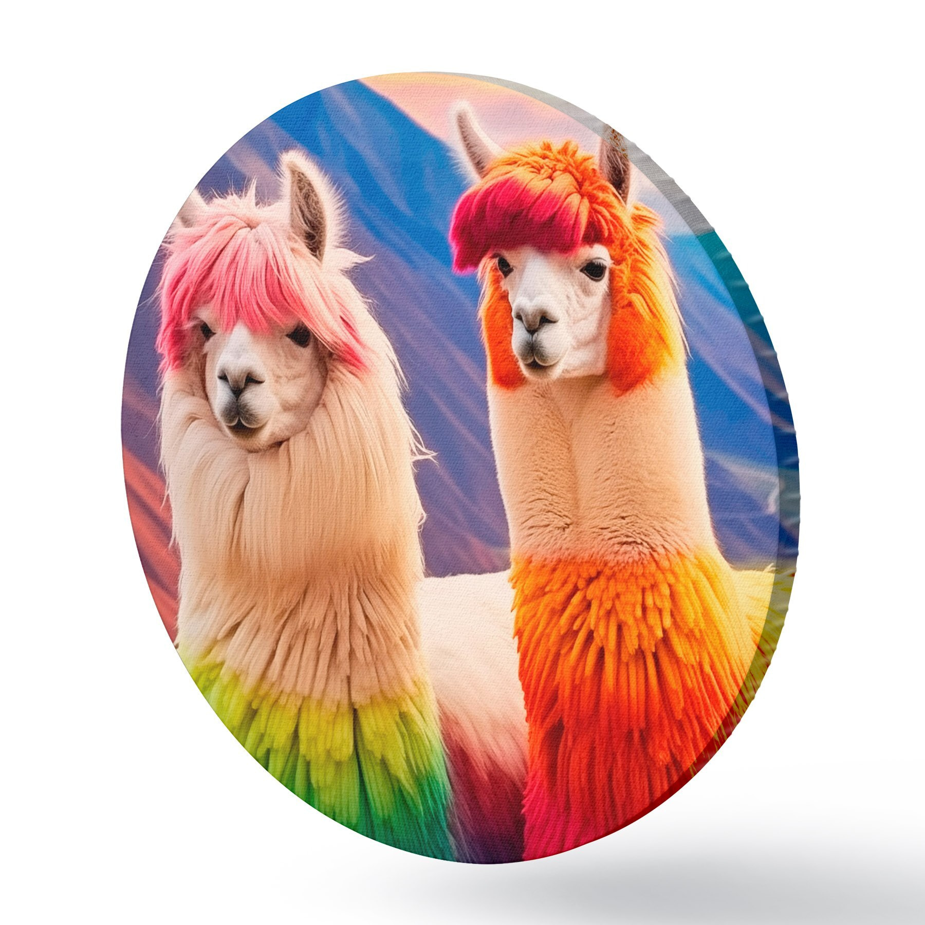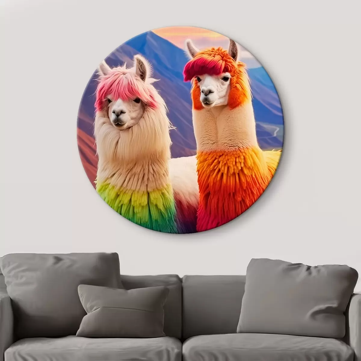 Tableaux ronds Des lamas arc-en-ciel pleins de gaieté r43262