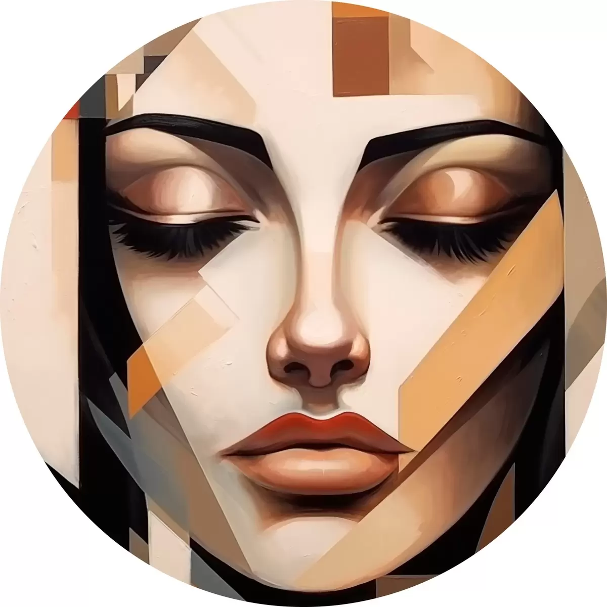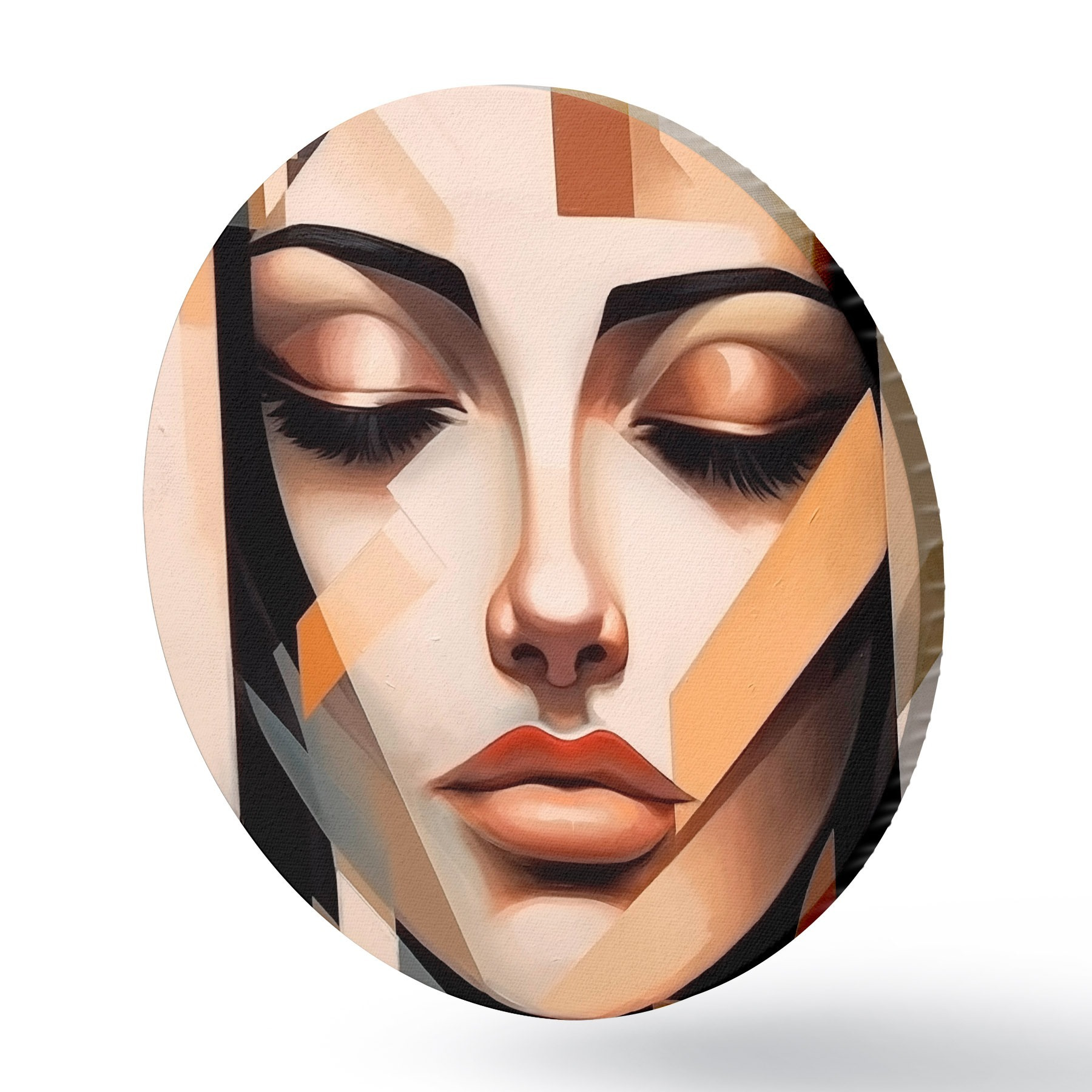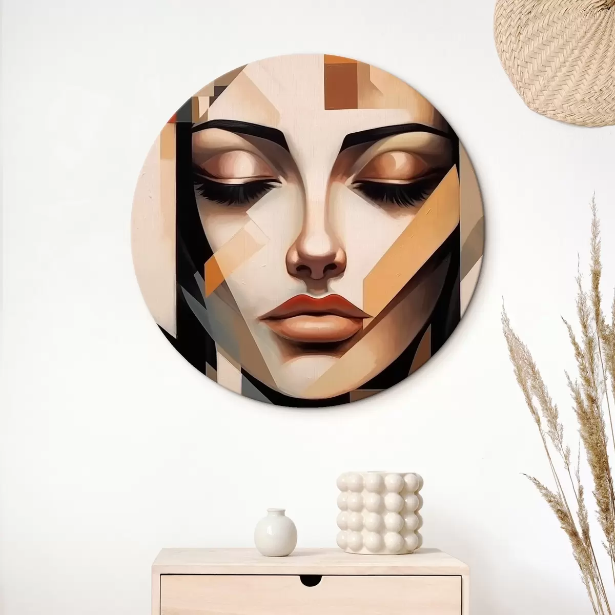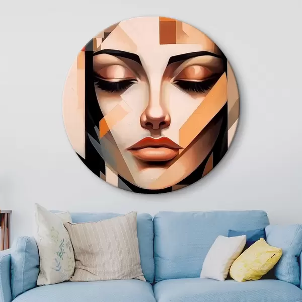 Tableaux ronds Portrait géométrique dans des couleurs chaudes r43281